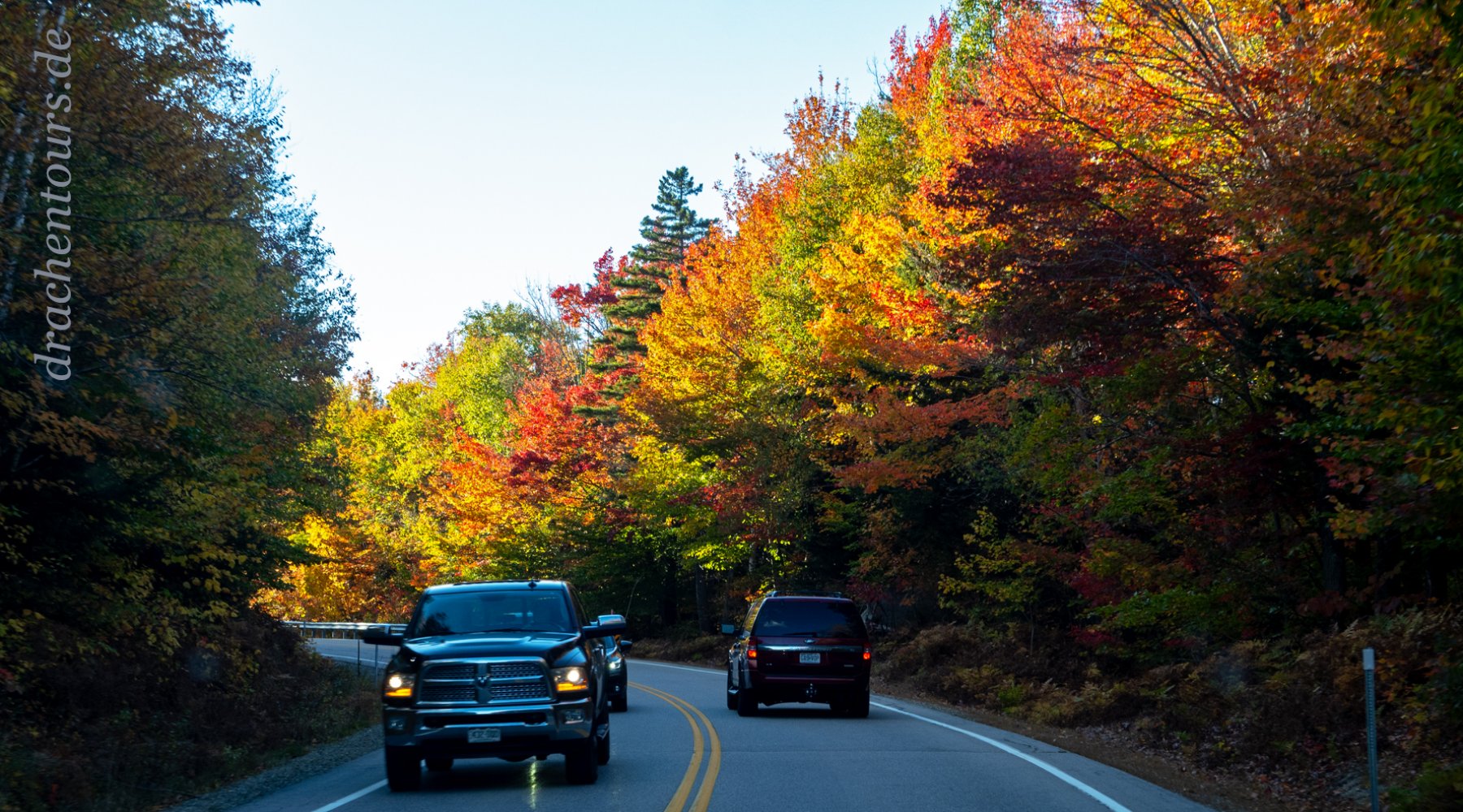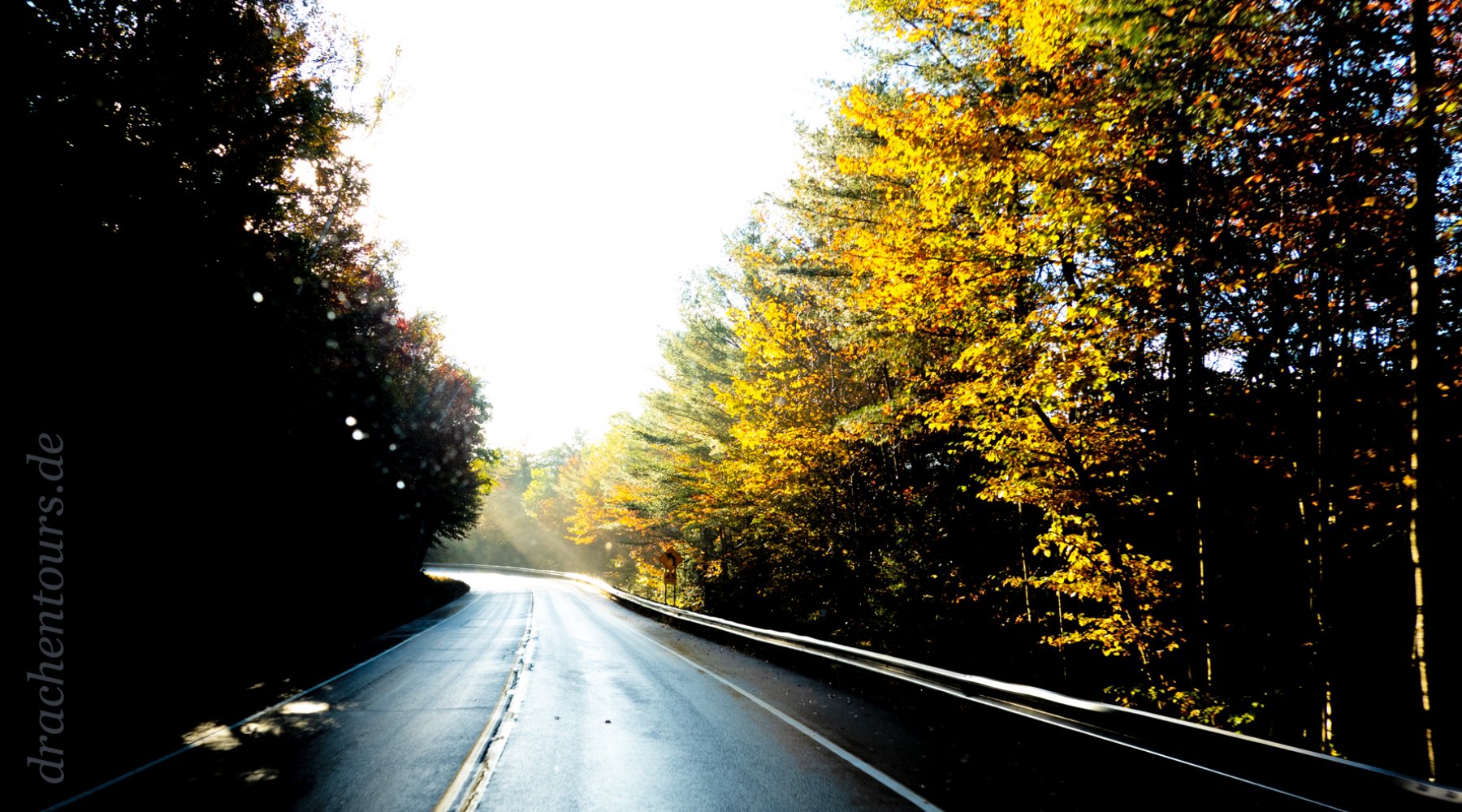 Die Farbenpracht der Wälder lockt Menschen aus allen Teilen des Landes hierher, nicht nur “Schönwetter-Fahrer” ;-)