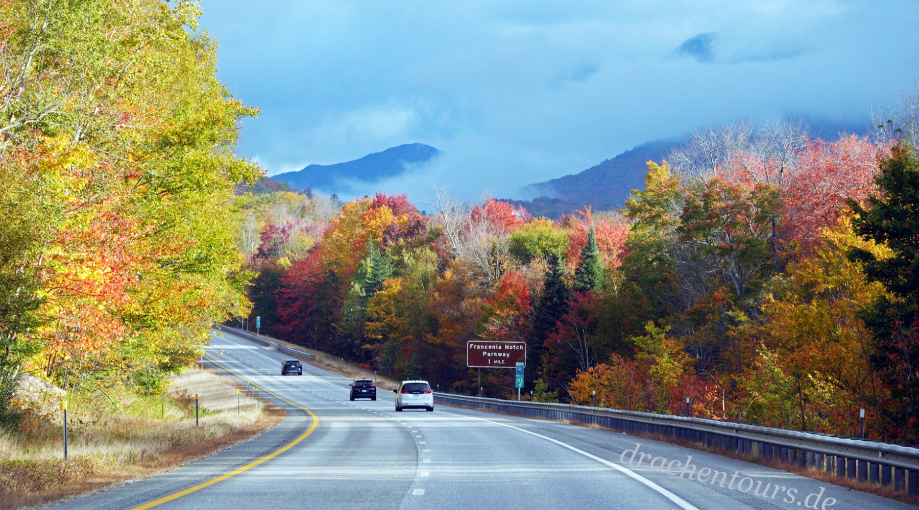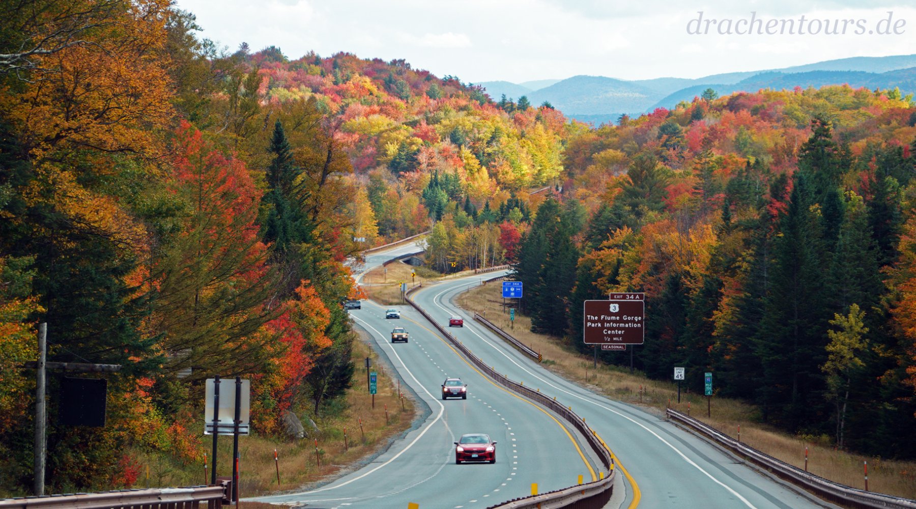Der Kancamagus Highway schlängelt sich von Lincoln nach Conway (auf knapp 56 km einmal quer durch New Hampshire).