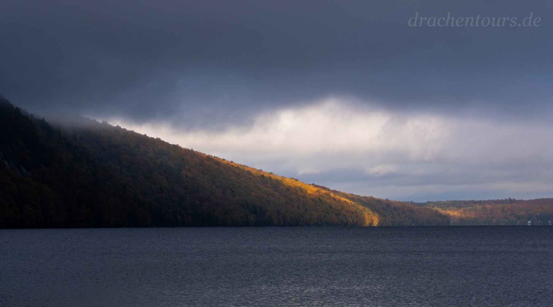 An meinem ersten Woodstock-Stopp in Vermont hatte mir der Besitzer des “ Soulfully Good Cafés “ seinen Lieblingsort im Herbst verraten. Als ich am See ankomme, ist die Sonne bereits am untergehen. Ich mache nur ein Foto.