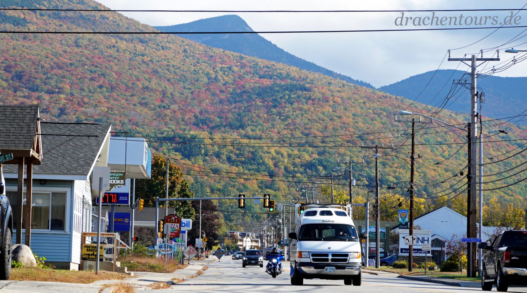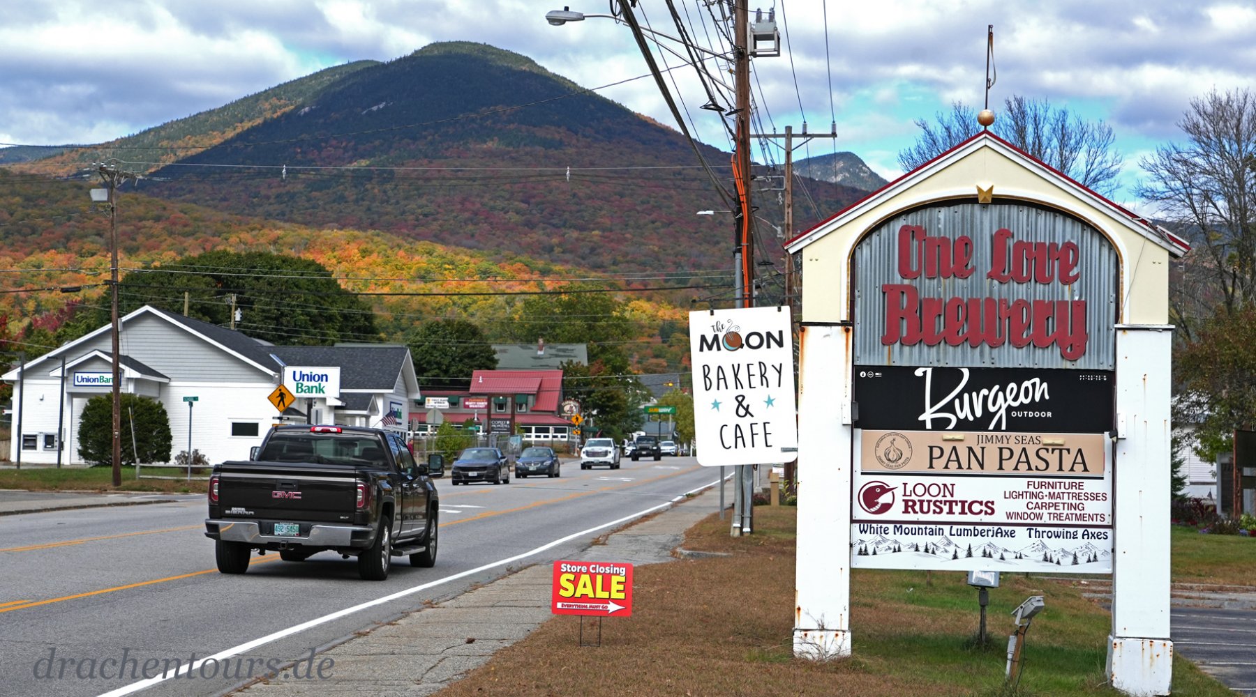 Diesmal entscheide ich mich für das Woodstock (“nebenan”) im Nachbarstaat New Hampshire. Man kann sich Vermont und New Hampshire wie zwei längliche Handtücher vorstellen, das eine wird schmaler, das andere dafür breiter. Ich bin nun im rechten der beiden unterwegs, viel weiter Richtung Norden, als noch vor einer Woche im “ersten” Woodstock (VT).