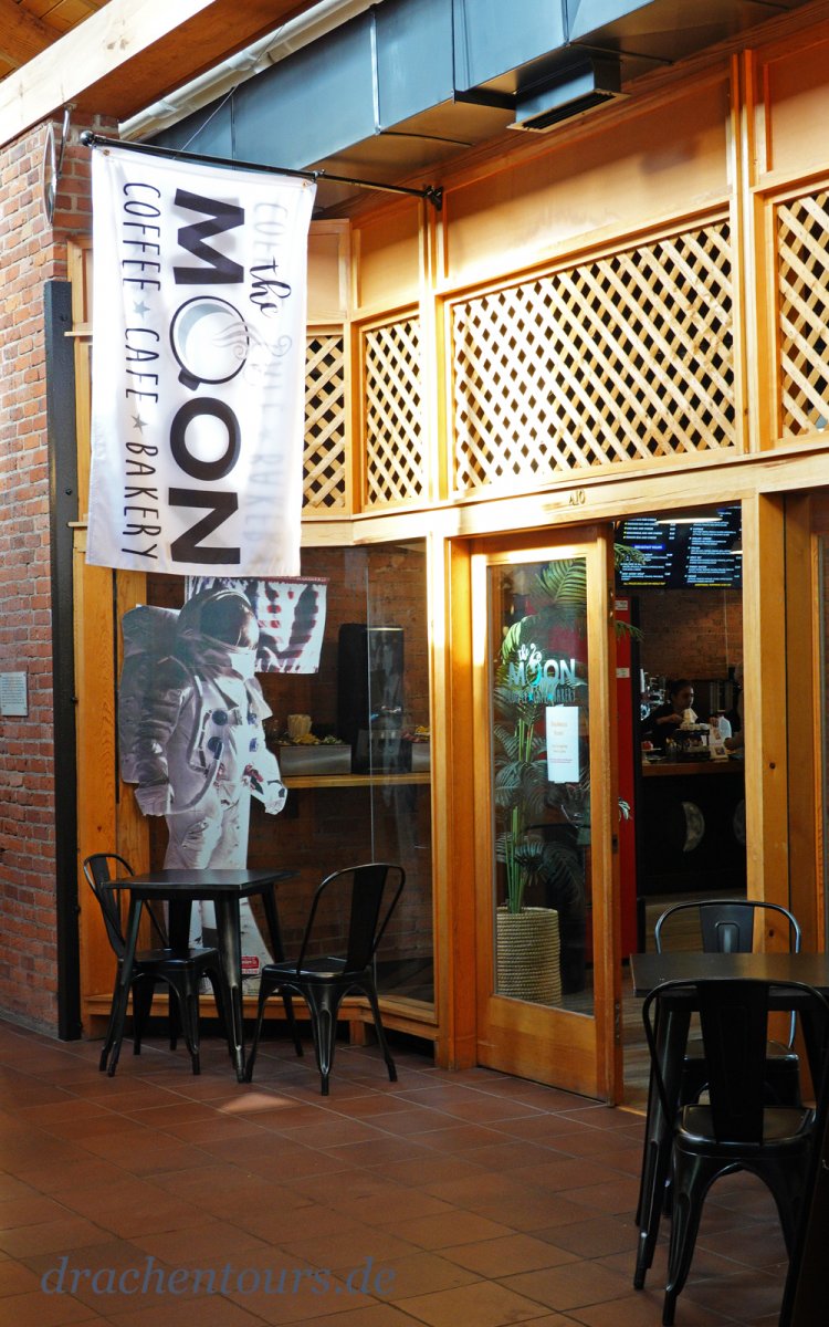 Es liegt in einem rustikal, eingerichteten Einkaufszentrum – eher klein und gemütlich. Einige Geschäfte bereiten sich gerade auf die Wintersaison vor und man könnte meinen, es wäre wenig los. Aber nicht so im “The Moon Coffee Café Bakery”, was mir bereits bei meinem ersten Besuch auffällt.
