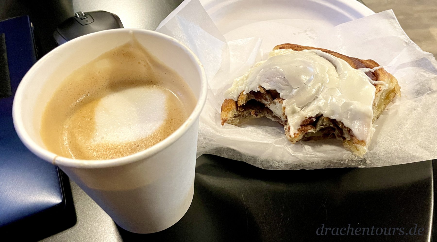 Von hieraus starte ich in den kommenden Tagen alle meine Ausflüge. Denn außer leckeren Cappuccino gibt es hier phänomenale (morgens ofenfrische) Zimtschnecken und Sandwich-Variationen (auch mit Apfel, Cranberries oder Blaubeeren), die ich nicht mit Worten beschreiben kann.