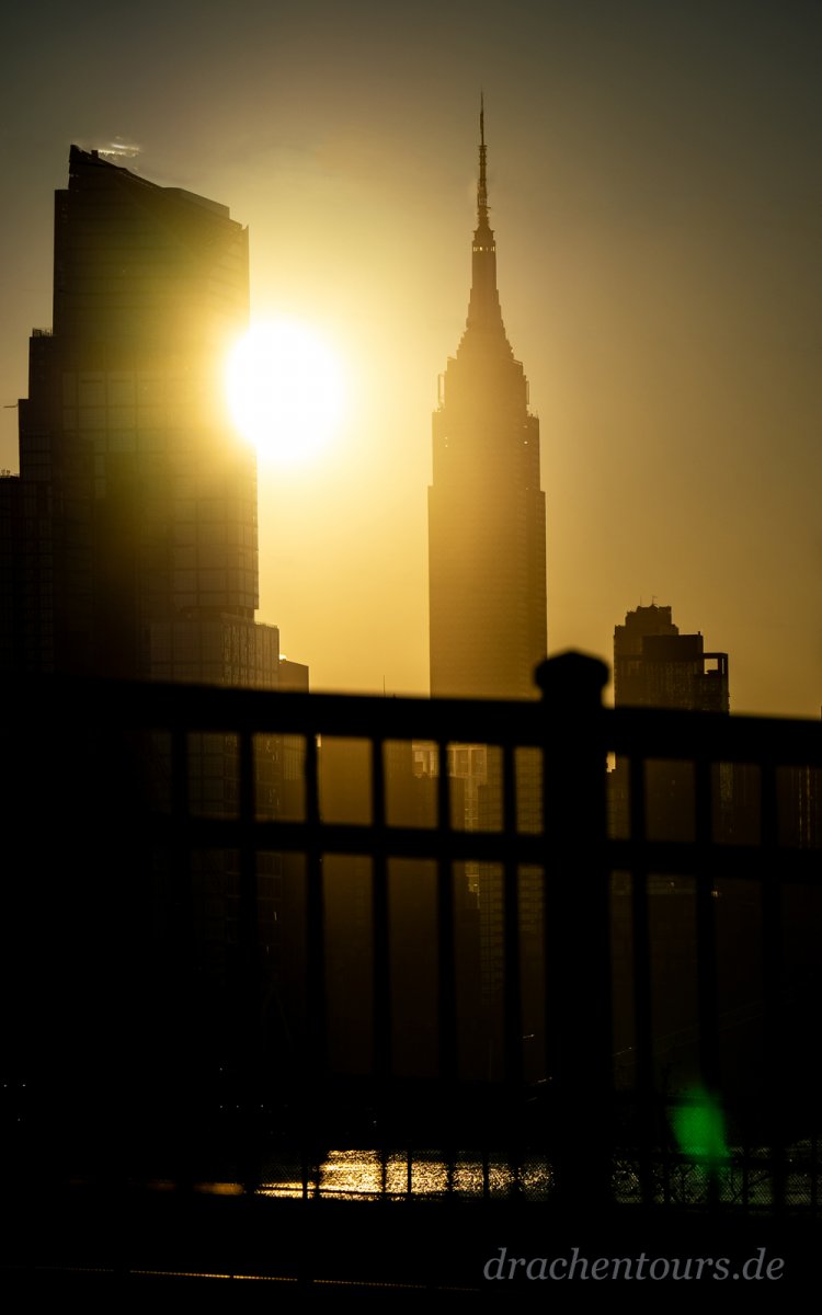 Nun ja, ich fahre auf der dem Sonnenaufgang zugewandten Seite – parallel zu Manhattan – Richtung Jersey.