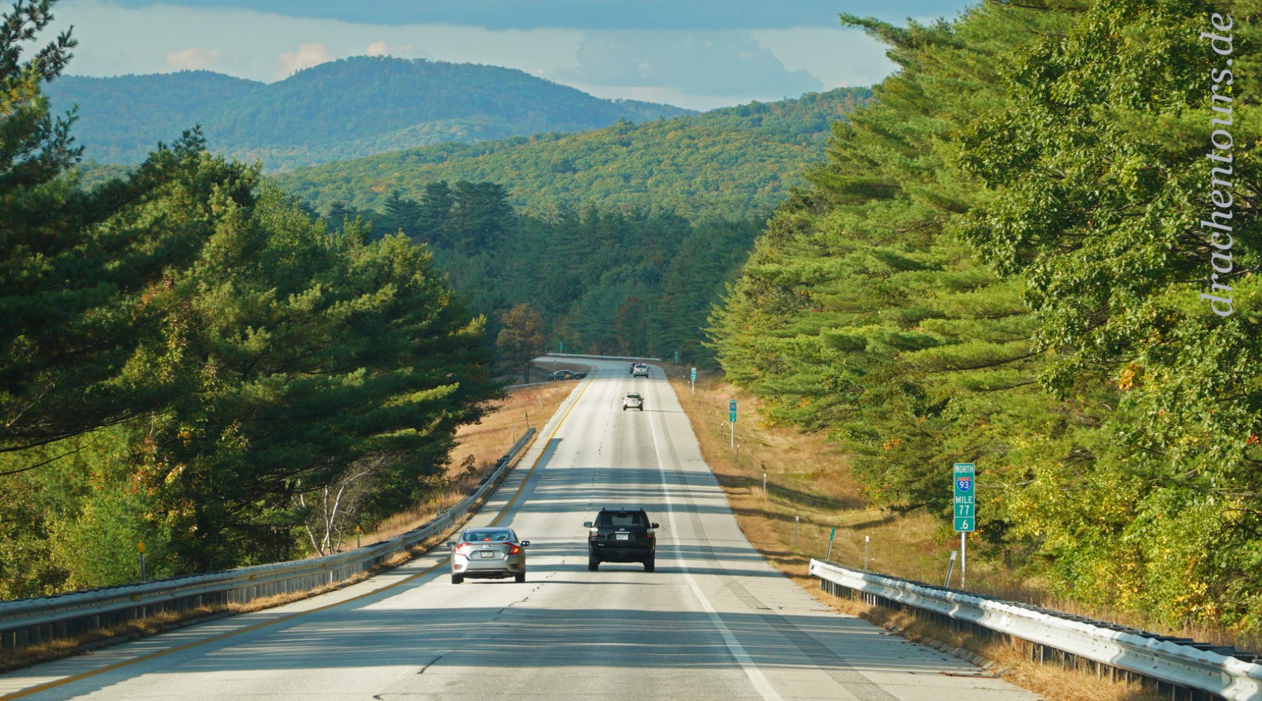 Vielfältige Wandermöglichkeiten auf unzählige Hügel / Berge / Abfahrtspisten (im Winter) werden durch großzügige Parkplatz-Areale an der Interstate 93 den Naturbegeisterten angeboten. Die State Parks sind Erholung pur, wenn man auf den richtigen Hügel geht …