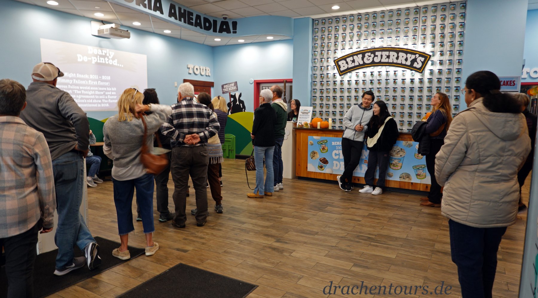Umso überraschter war ich, als ich an dessen riesigem Straßen-Schild vorbeifuhr. 10 Sekunden später war ich umgedreht und auf dem Rückweg zum Parkplatz. Nicht unbedingt wegen einem Eis, sondern wegen dem Drumherum (der Menschenmassen hier) UND weil Ben & Jerrys eine Klima-Aktivistin und Meeresbiologin bei ihrer Arbeit unterstützt