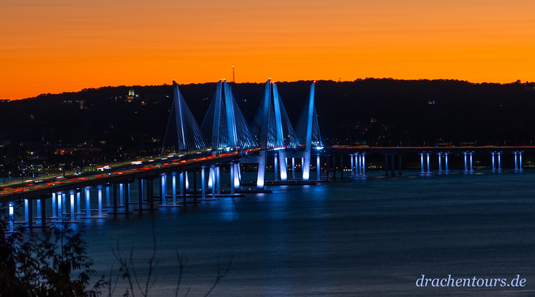 Genial – morgens um 5:30 Uhr geht dann los – über die Gouverneur Mario Cuomo – Brücke (tolles Lichtspiel) auf die Westseite vom Hudson.