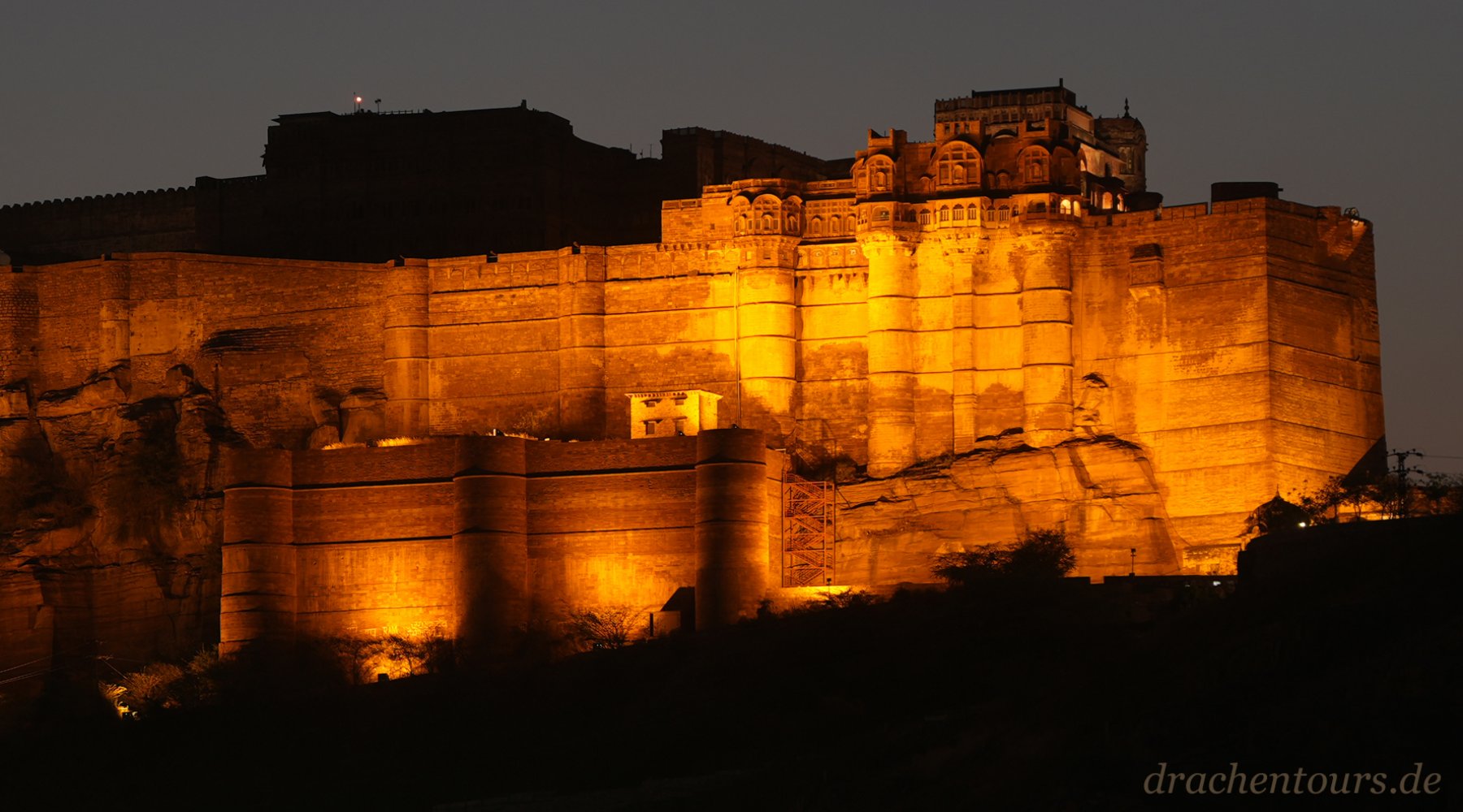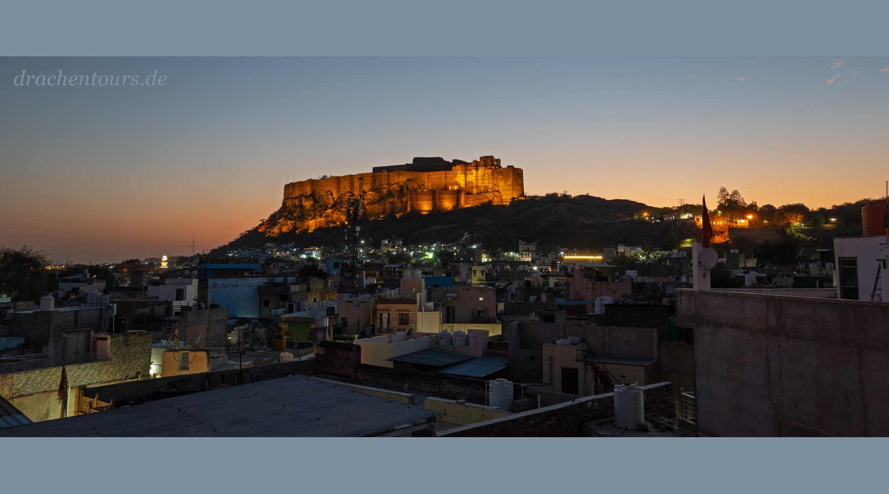Ich habe mich in den Anblick nach Sonnenuntergang, beim Abstieg vom Fort Nahargarh kommend, verliebt (Foto 01+02).