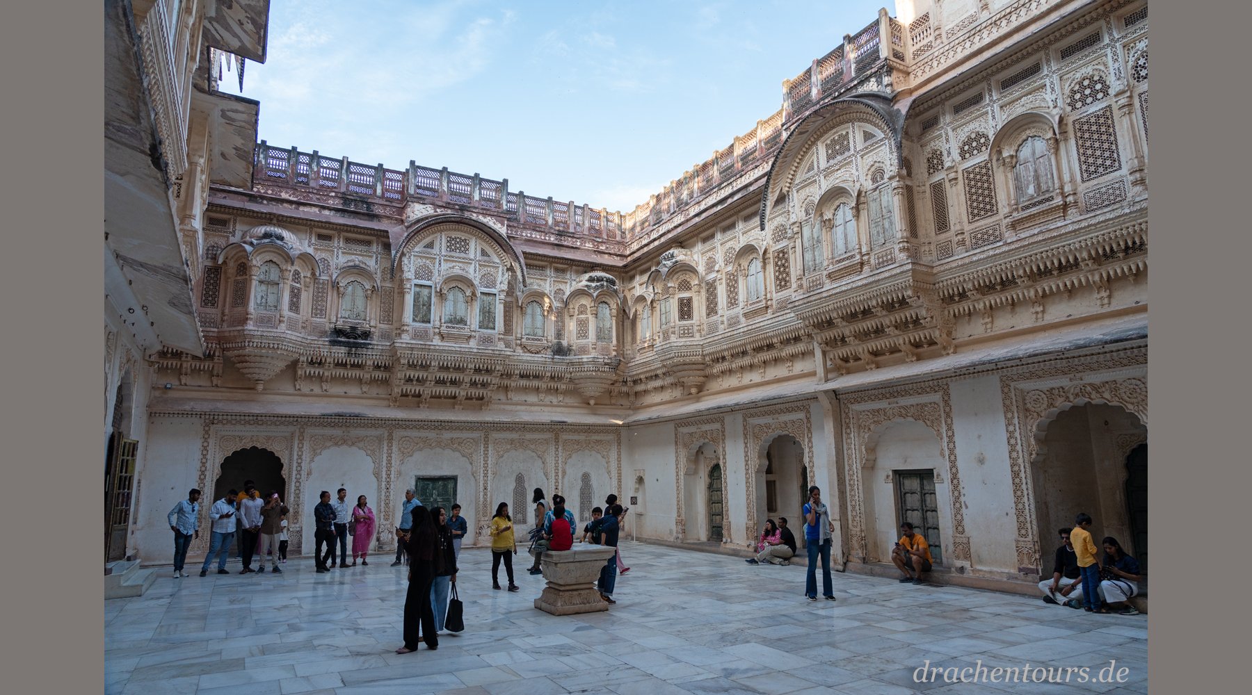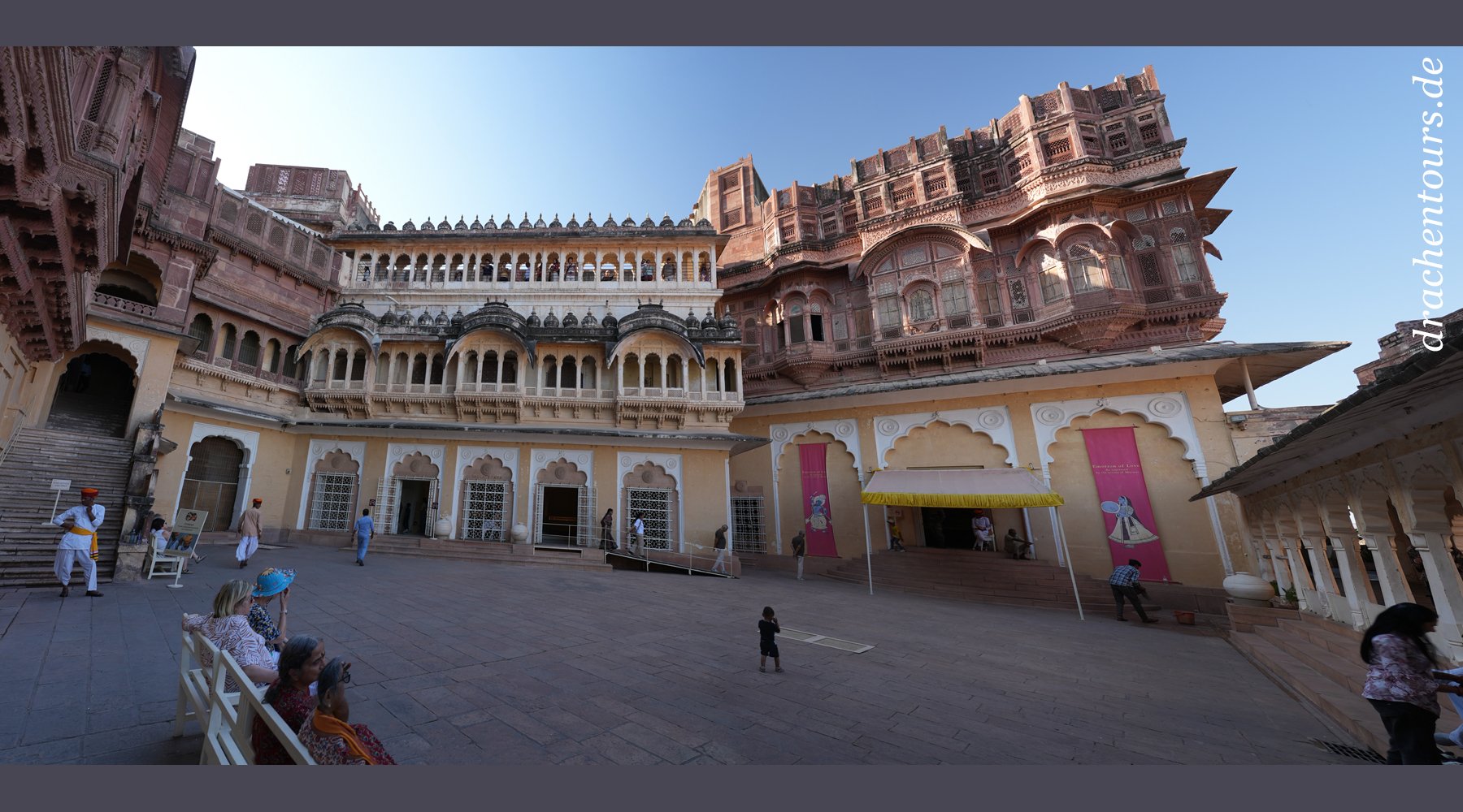 Im Innenhof herrscht eine wundervolle Stimmung, gefüllt mit Gesang, Musik und Menschen unterschiedlichster Herkunft. Ich treffe zahlreiche “westliche” Urlauber als auch indische Gruppen, die hunderte von Kilometern angereist sind (Foto 02).