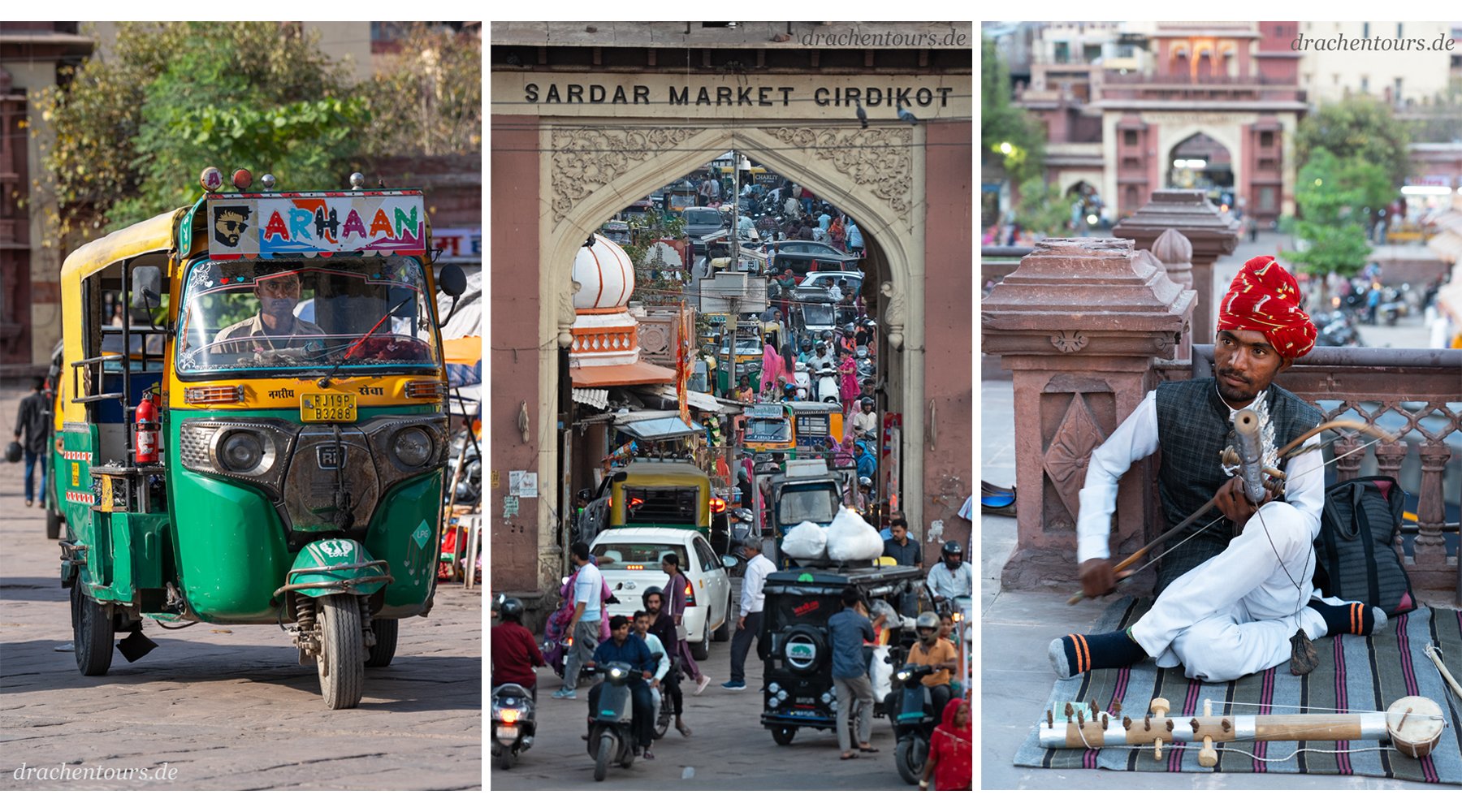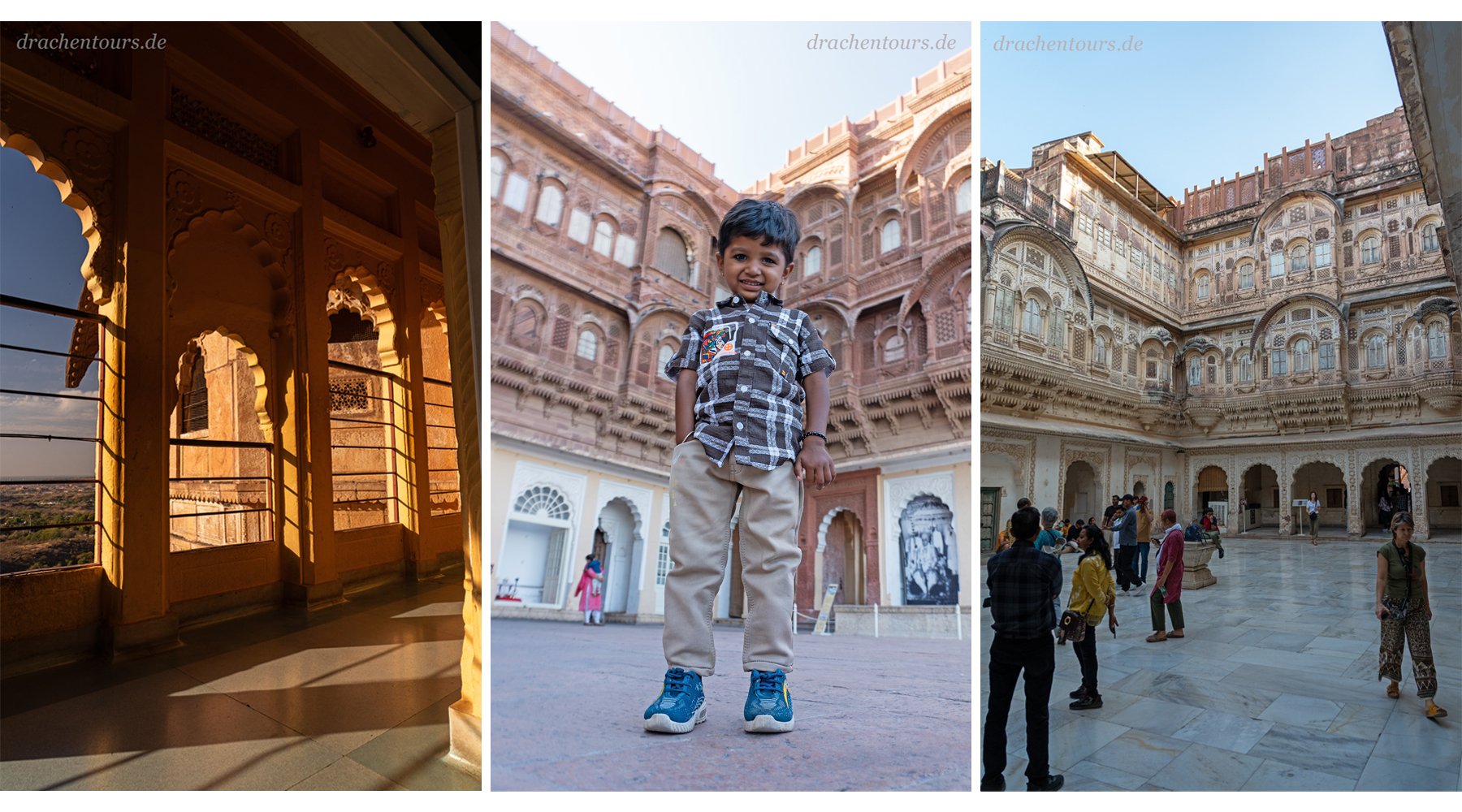 Mit der Ankunft im kleinen aber feinen Hotel (Foto 01 – links) spüre ich die Gemütlichkeit und Gastfreundschaft der Rajasthani.