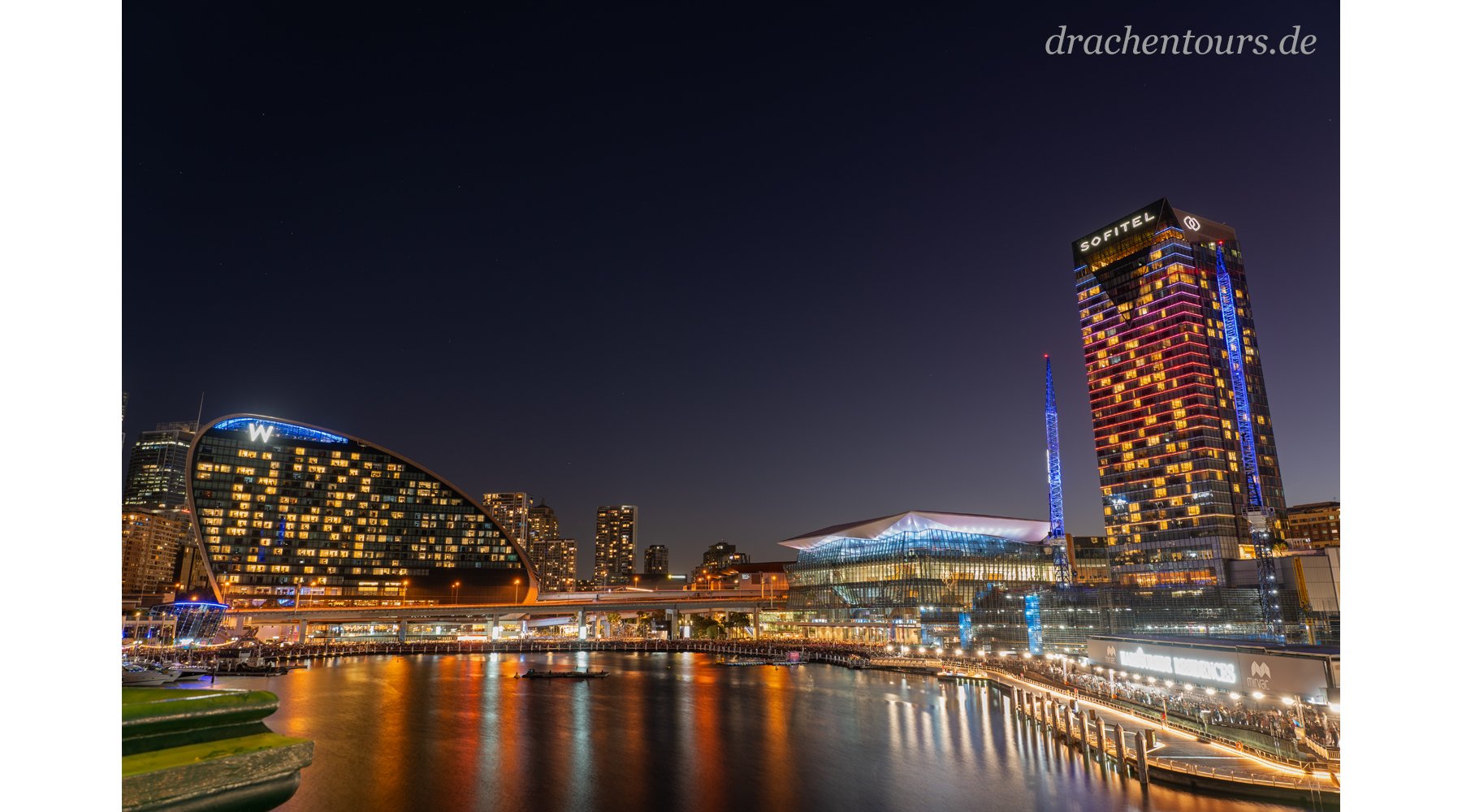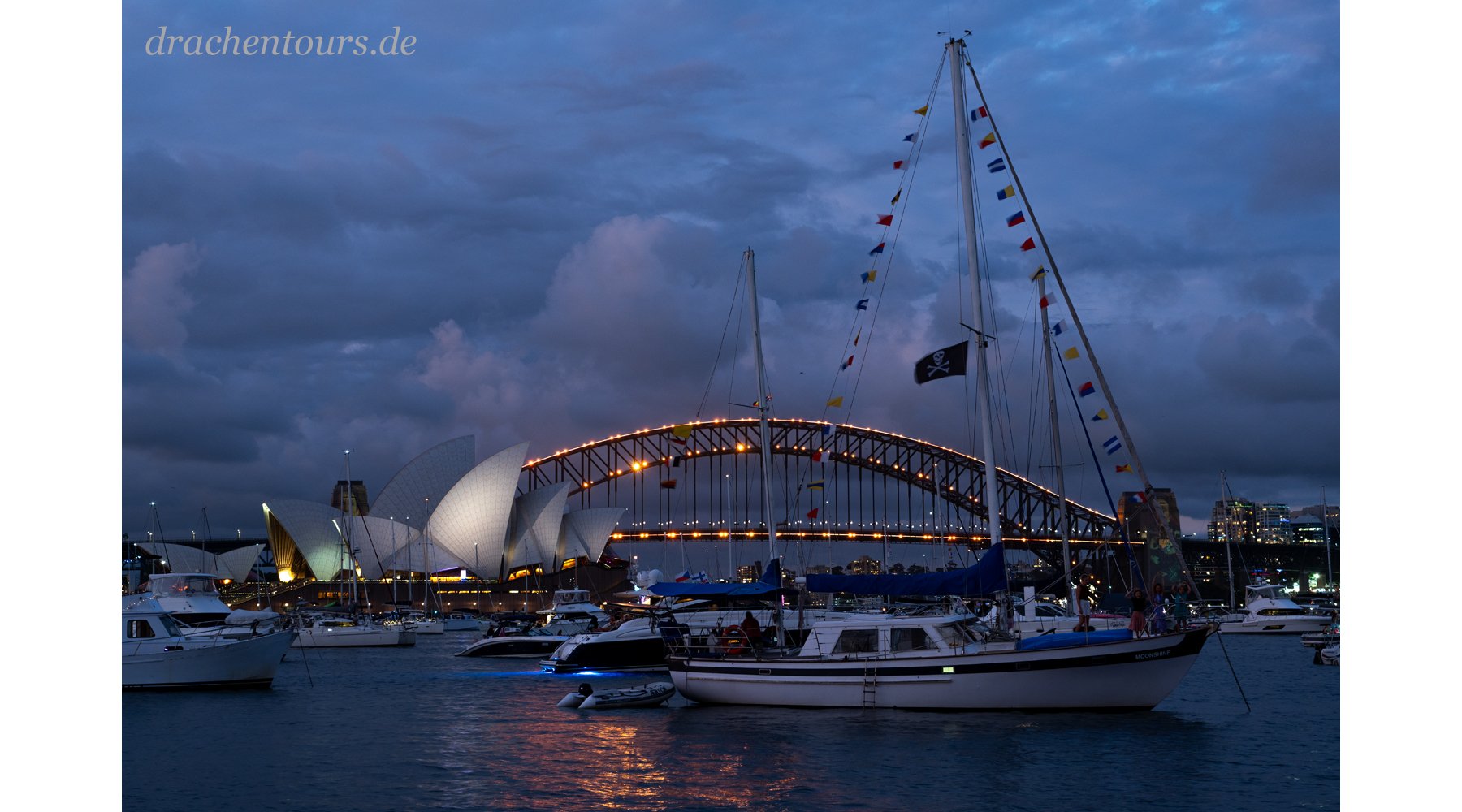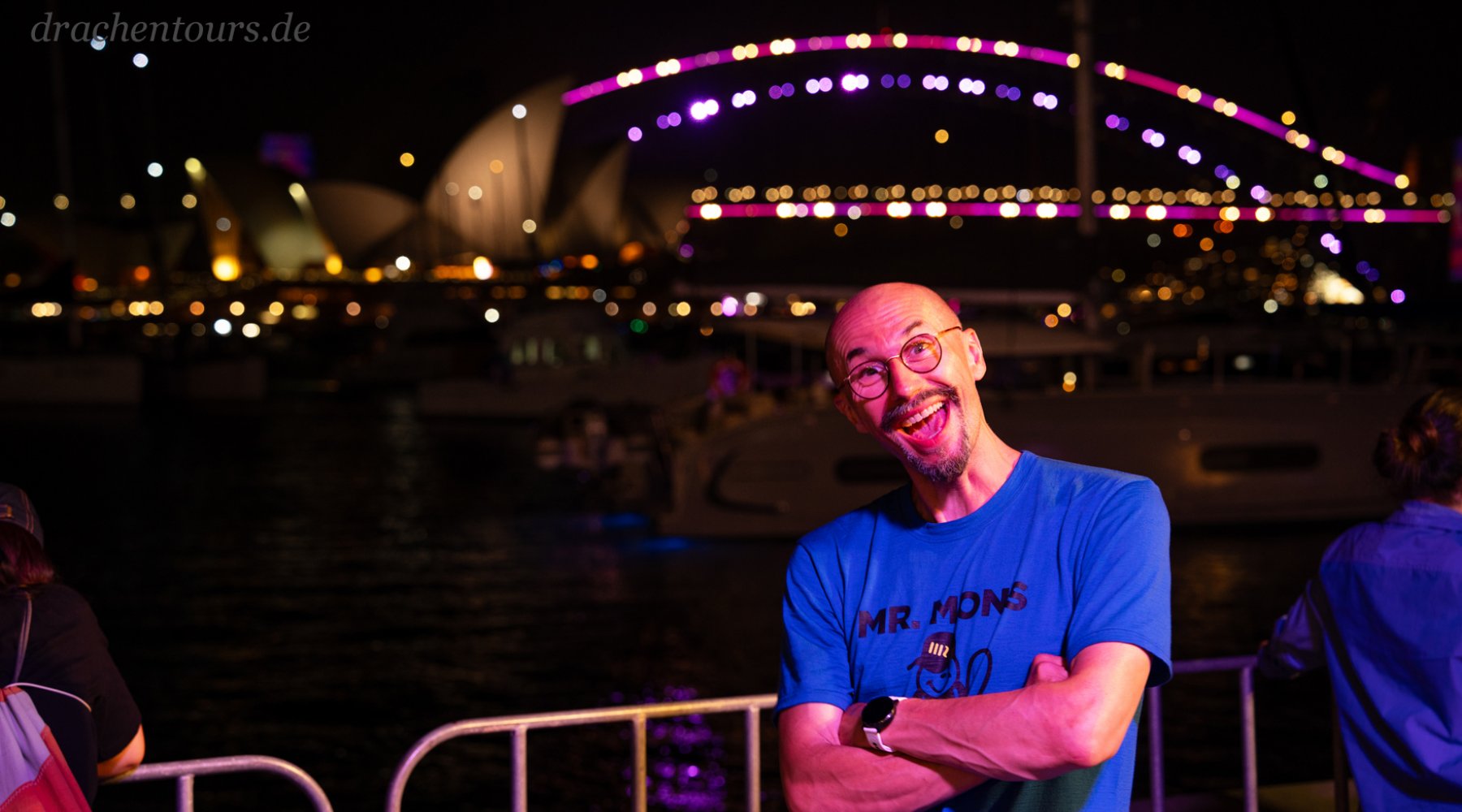 Richtig gelesen: HOSTEL, denn die Übernachtungspreise vervielfachen sich in Sydney in der letzten Woche des Jahres astronomisch. Als ich nach 4-5 Minuten Fußweg an der Pyrmont Bridge stehe und das gesamte Areal von “Darling Harbour” im Abendlicht bestaune, steht mir ein dickes Grinsen ins Gesicht geschrieben – YES !!!