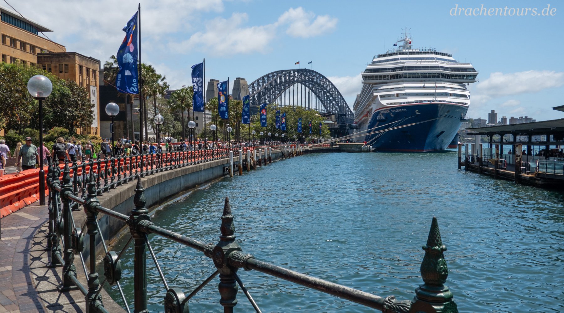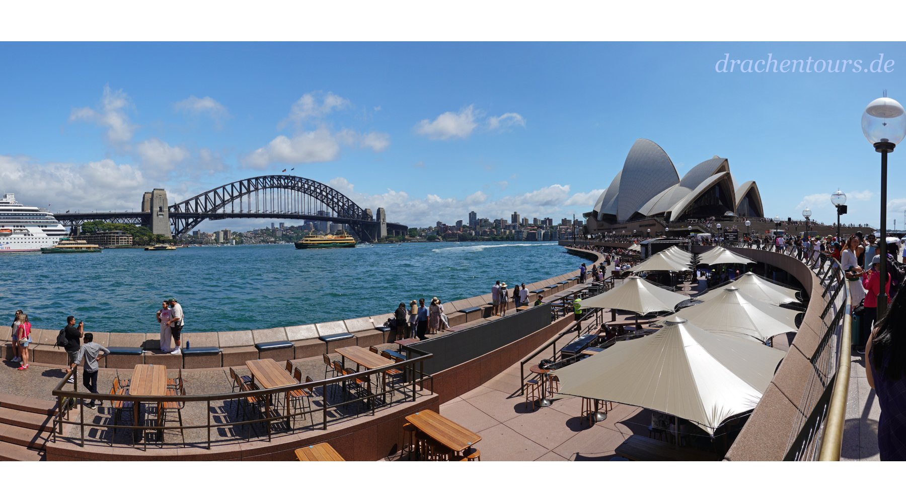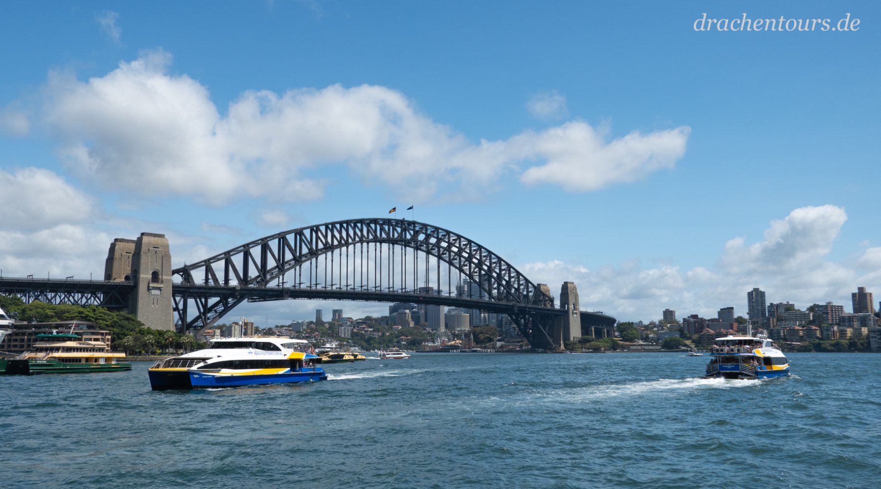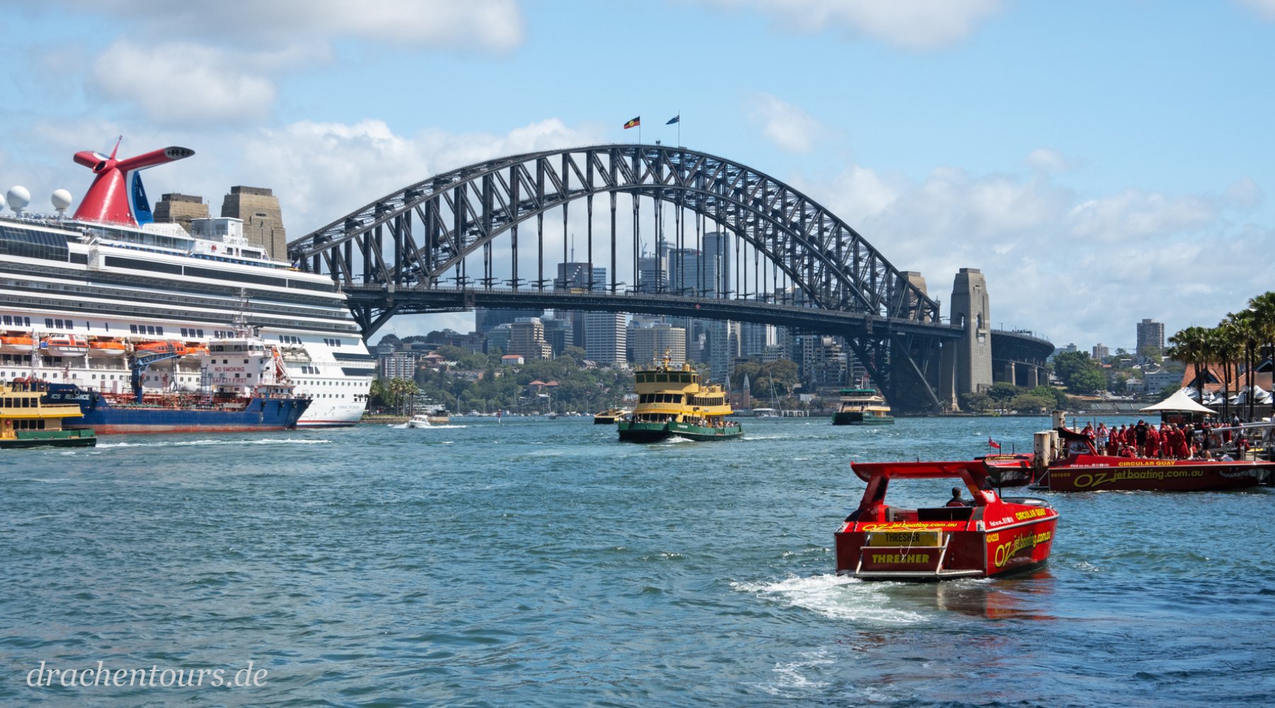 … welch ein lebendiges Treiben am Circular Quay – Fähren, Speed-Boote, Segelschiffe, Kreuzfahrtschiffe und unfassbar viele Touristen.