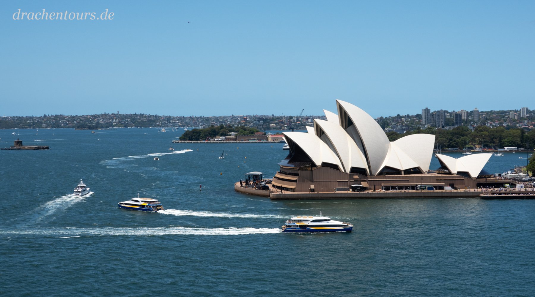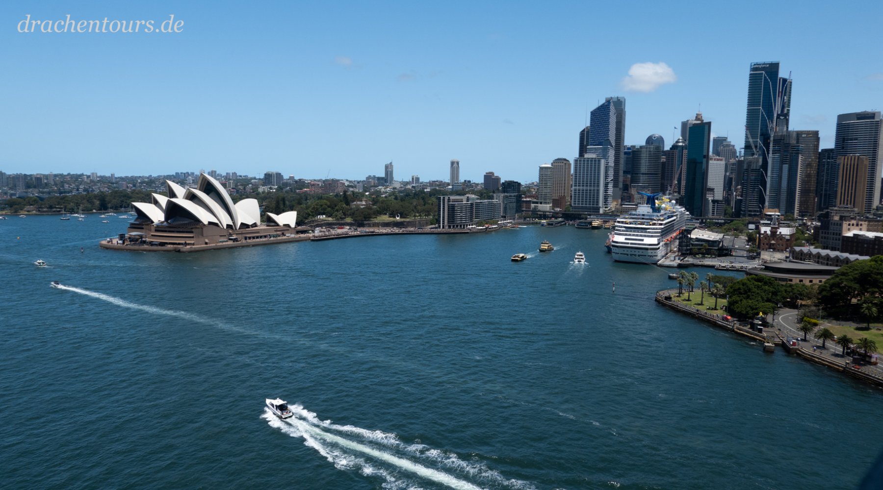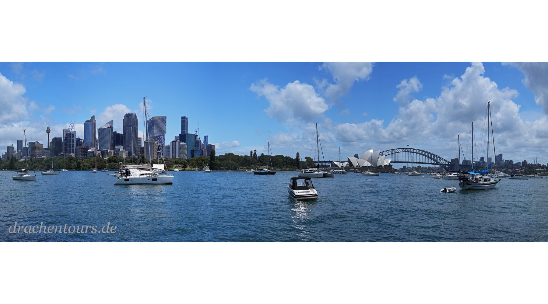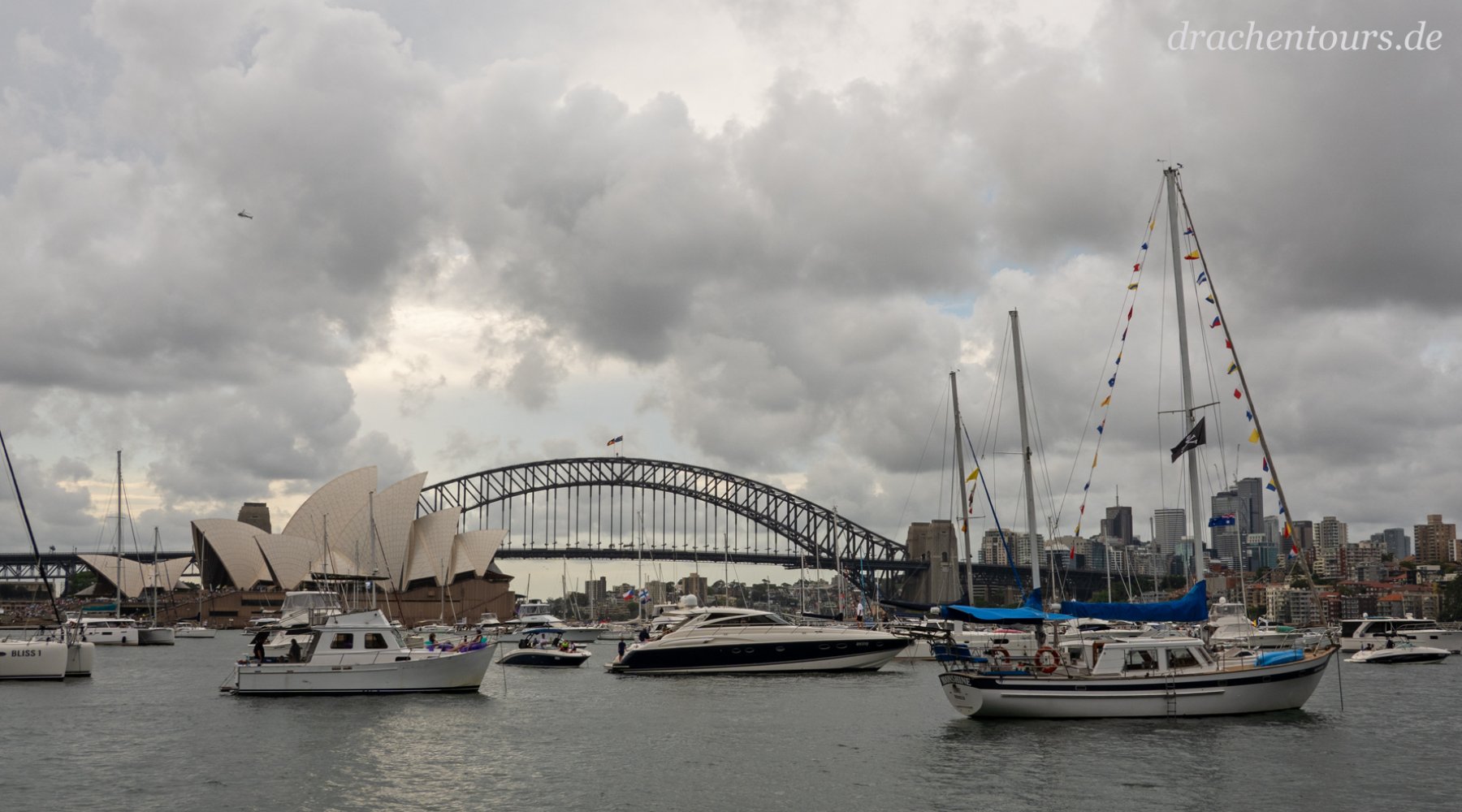 … welch ein lebendiges Treiben am Circular Quay – Fähren, Speed-Boote, Segelschiffe, Kreuzfahrtschiffe und unfassbar viele Touristen.