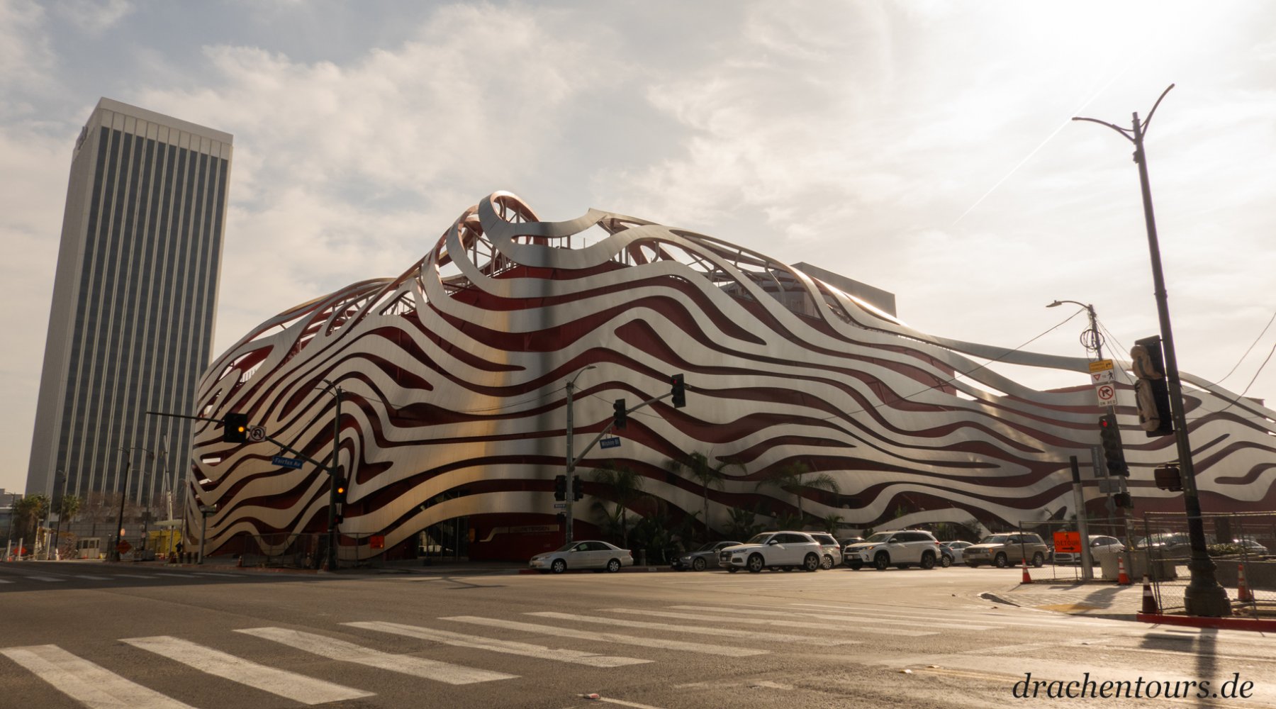 P.S. gegenüber des Museums steht ein beeindruckendes Gebäude (Foto 03) – “Petersen Automotive Museum” (große Sammlung an restaurierten Oldtimern, Rennwagen und Fahrzeugen aus berühmten Filmen)