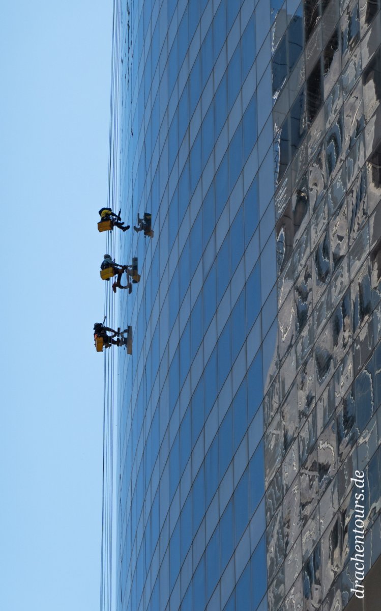 Natürlich geht es auch in der Innenstadt hoch hinauf – dort finden wir sogar ein paar fleißige, unerschrockene Arbeiter