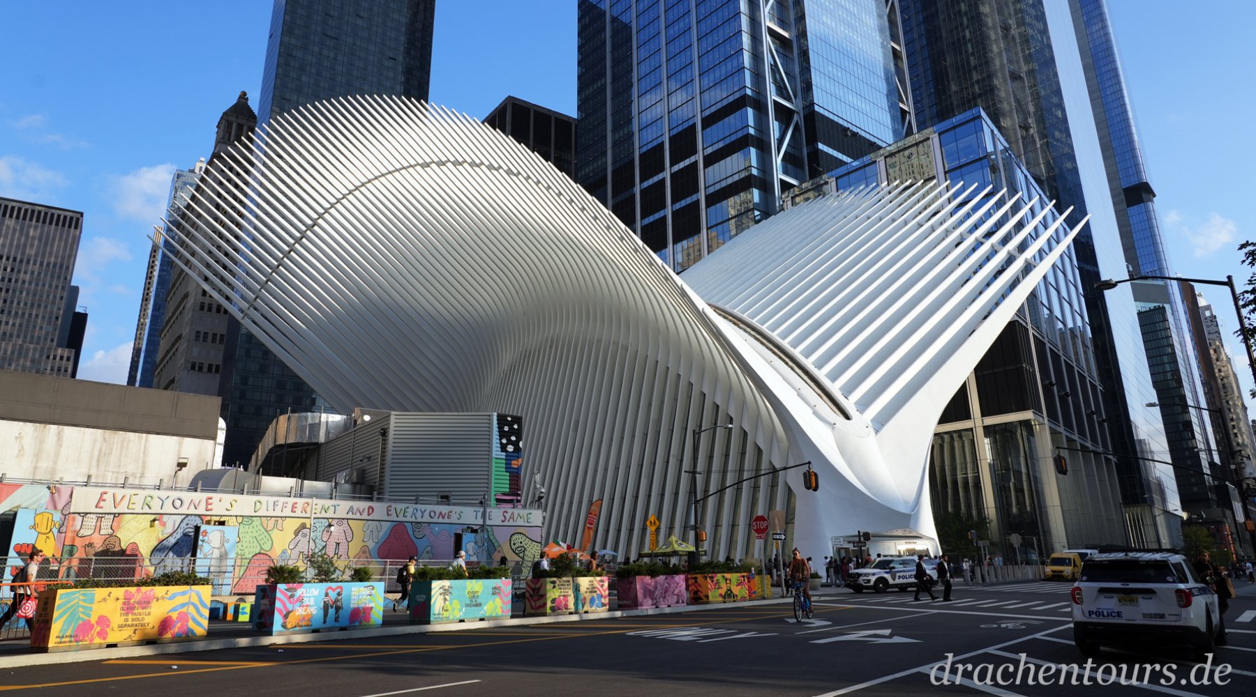 Wenige Schritte von den ehemaligen Türmen befindet sich die Haltestelle des World Trade Centers (WTC) und dient als Knotenpunkt im Subway- und PATH-System New Yorks.