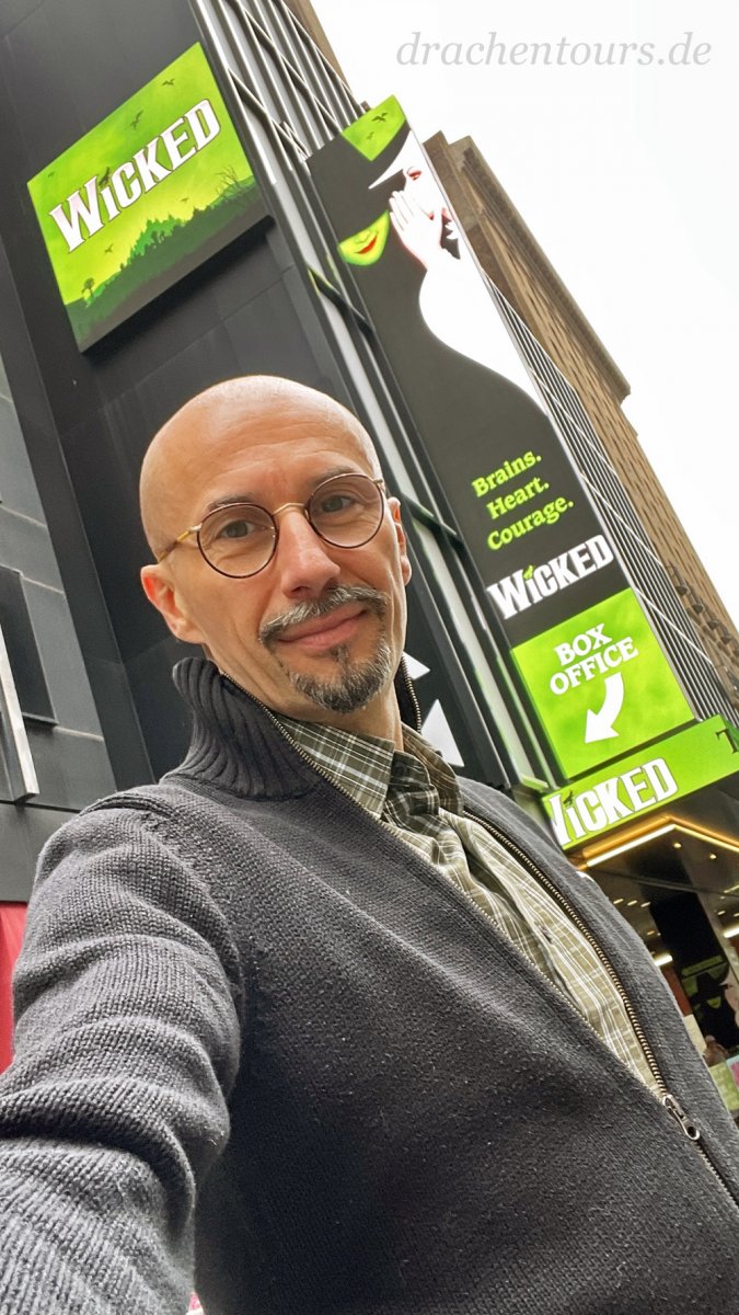 Ich hatte befürchtet, dass ich kein Ticket für mein Wunsch-Musical “Back to the Future” bekommen würde und kaufte das Ticket bereits 4 Monate zuvor. Völliger Quatsch – das nächste Mal wird das Ticket direkt am gleichen Tag zum halben Preis gekauft. In beiden Musicals (BTTF und WICKED) gab es noch genügend Plätze. “You live and you learn”… ;-)