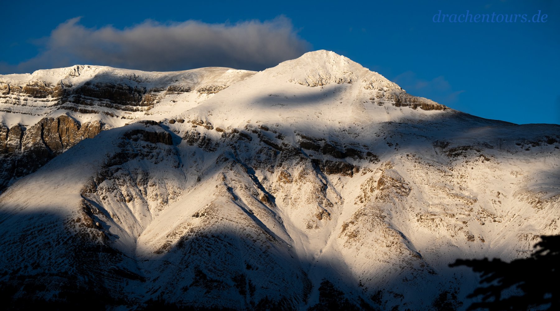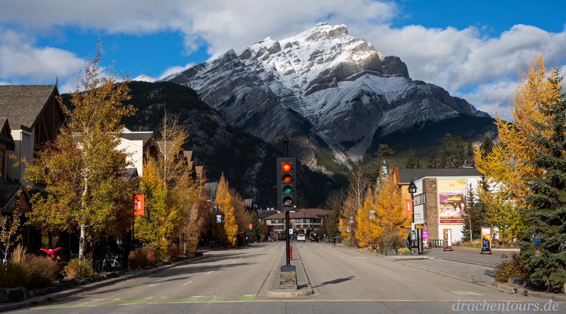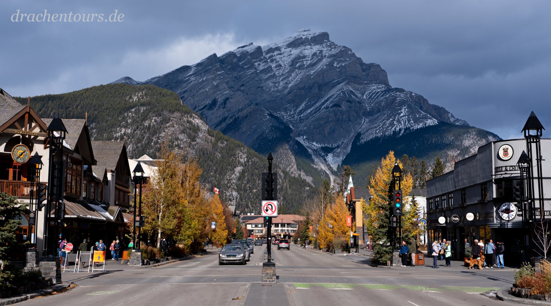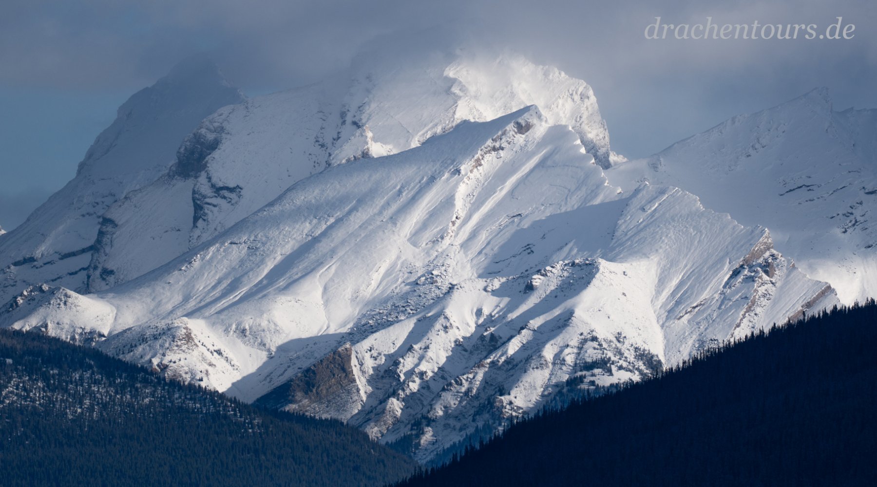 Ein paar Kilometer bevor ich am Lake Louise ankomme, überquere ich die Grenze zwischen den Provinzen British Columbia und Alberta. Die Rocky Mountains liegen quer im Westen Kanadas (von rechts unten nach links oben) und sind Teil beider Provinzen.