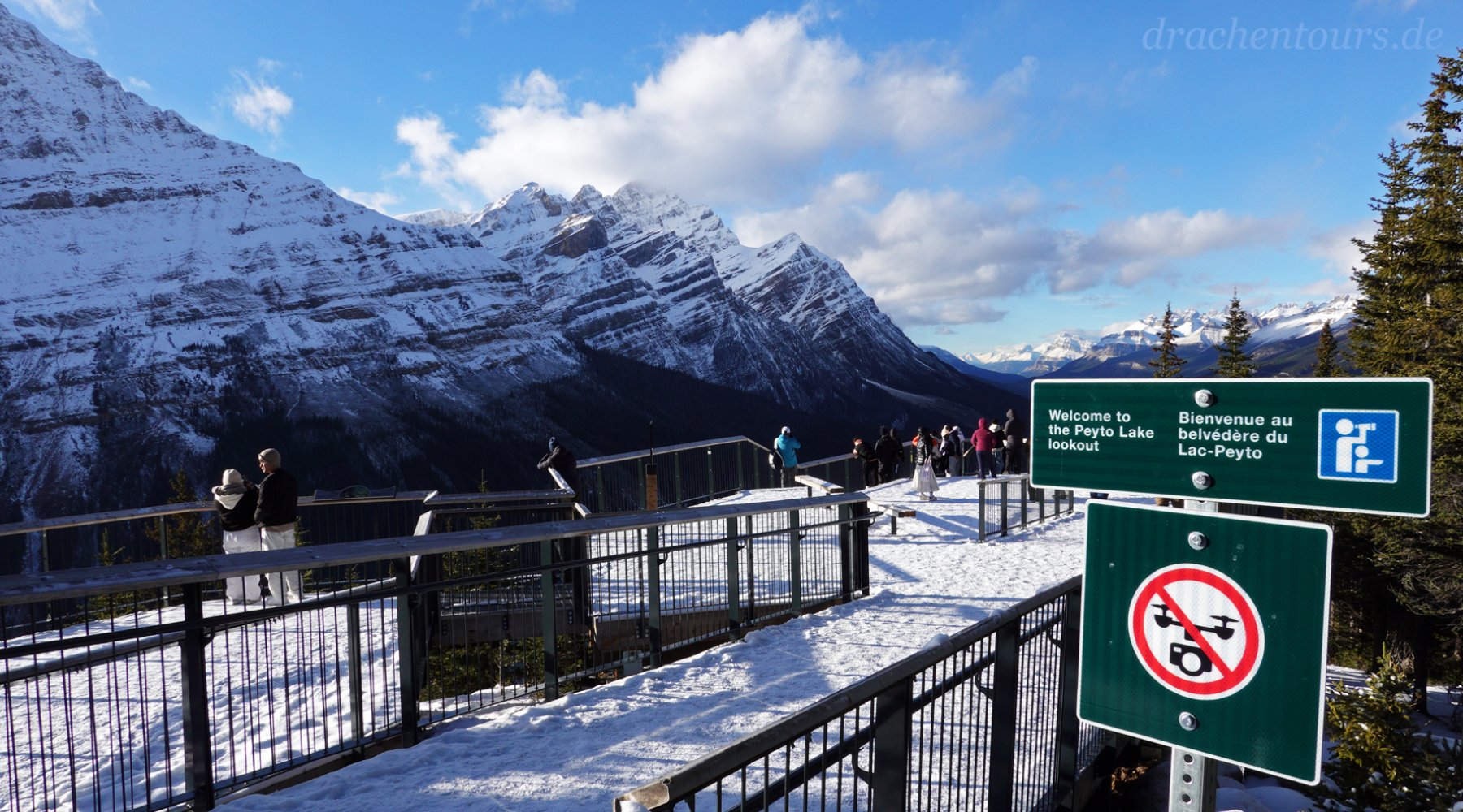 Da manche Seen für kanadische Verhältnisse relativ nah beieinander liegen, darf an diesem “Schlechtwetter-Tag” der wunderschöne Peyto (auf 1860 m Höhe) nicht fehlen.