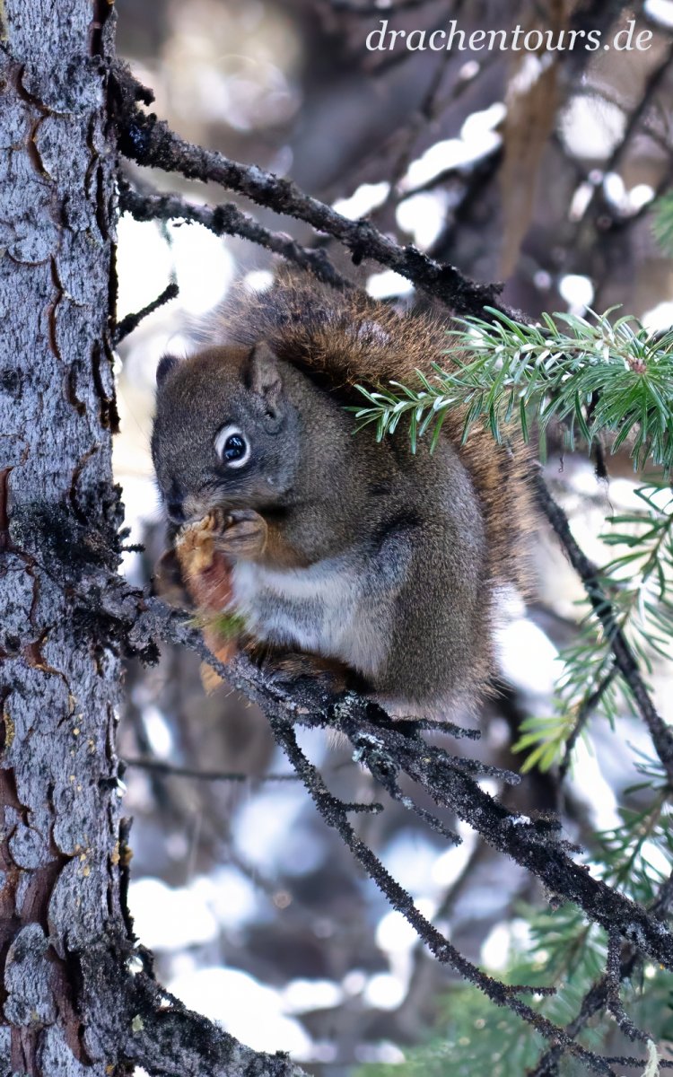 Das Eichhörnchen sagt schon mal leise: “HALLO hier ist die Tierwelt Kanadas” .