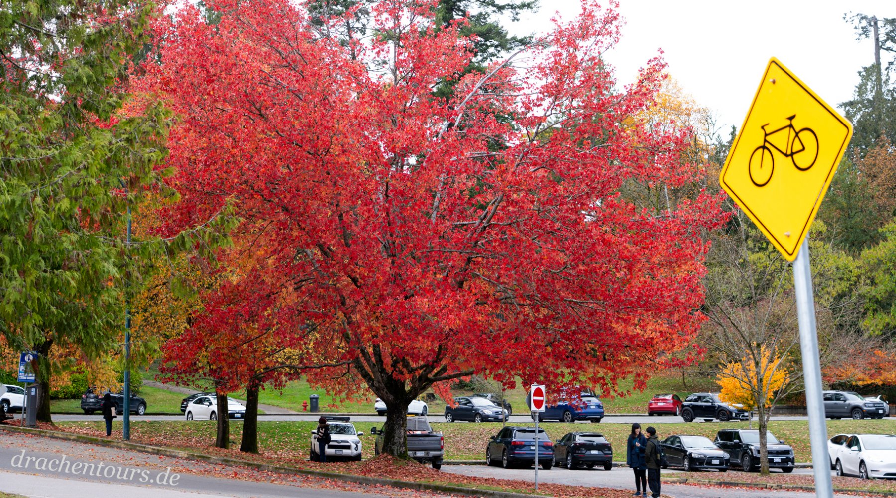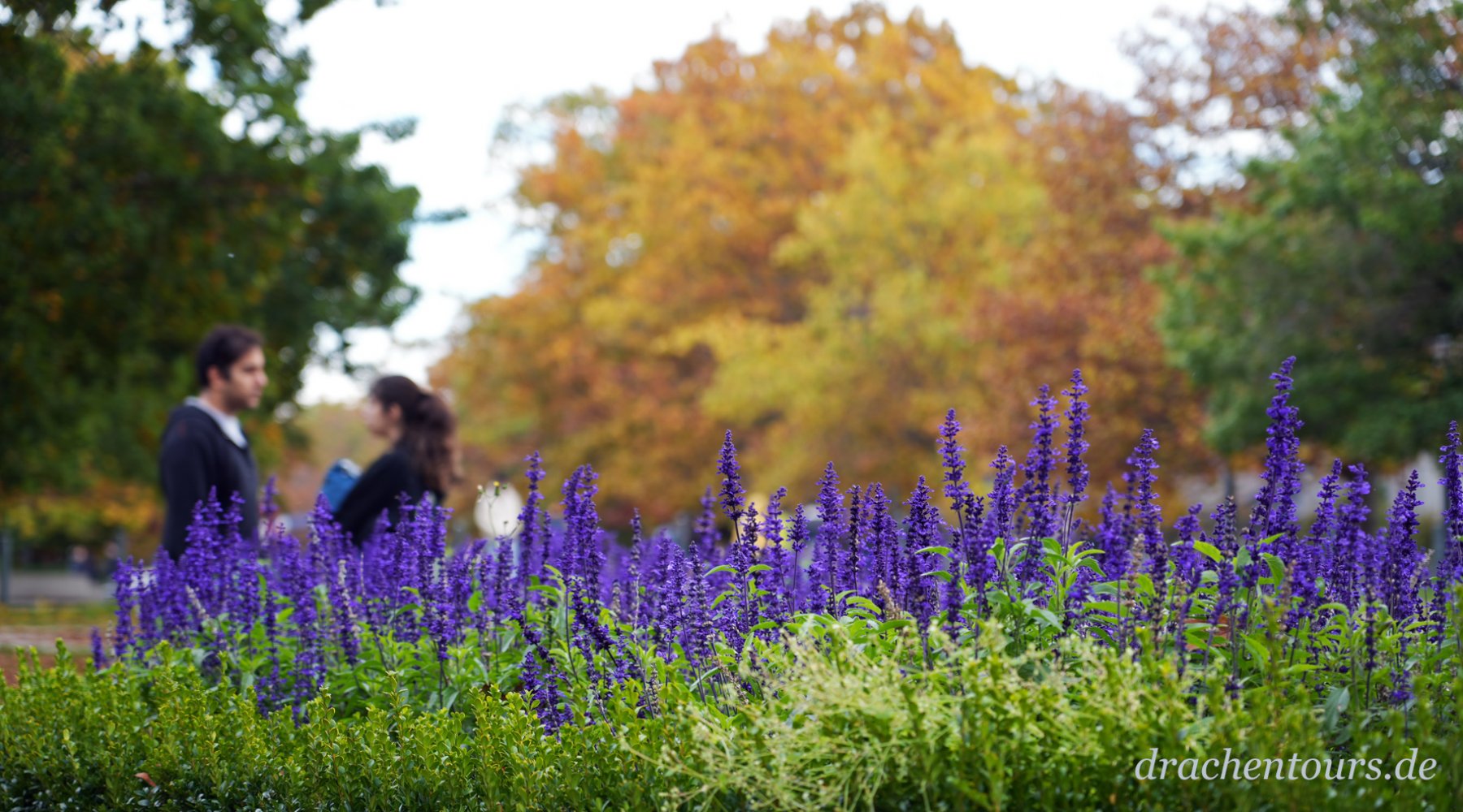 Breite Fußgängerwege, viele Parks und Grünanlagen, sowie (momentan besonders) farbenfrohe Bäume …