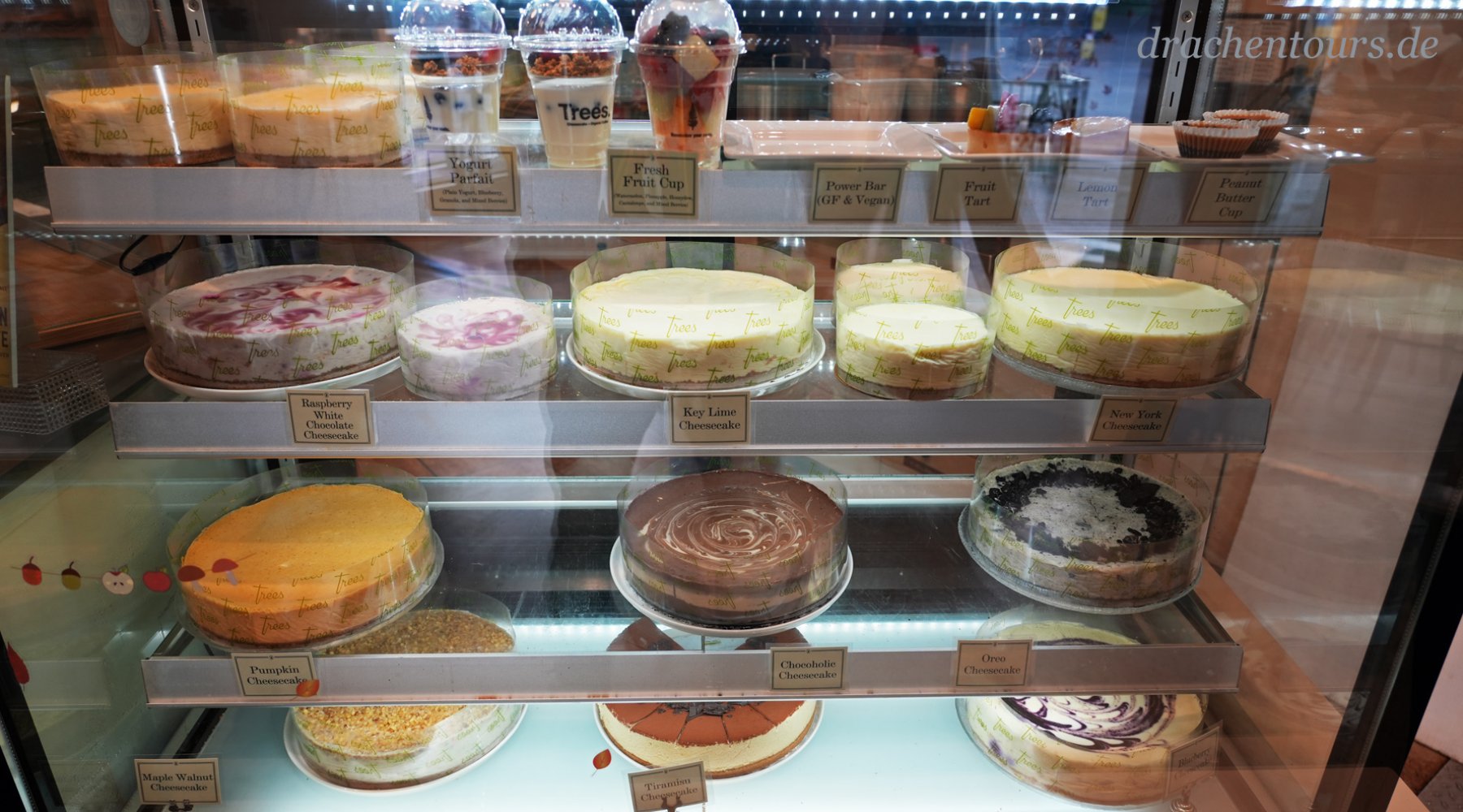 Mein Favorit der zahlreichen Cafés – TREES – mit einer riesigen Auswahl an Käsekuchen-Variationen.