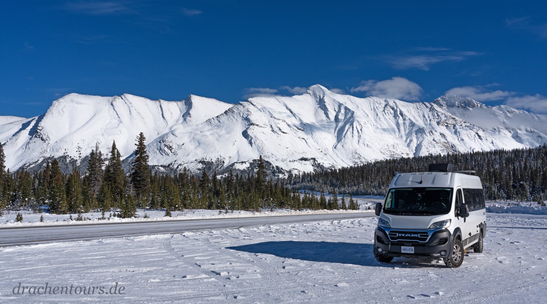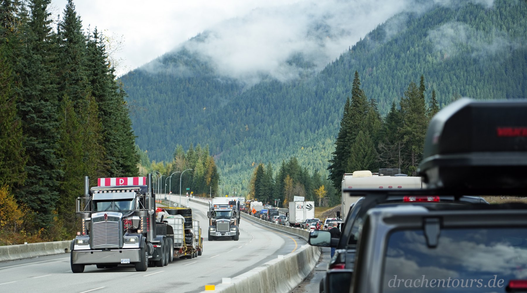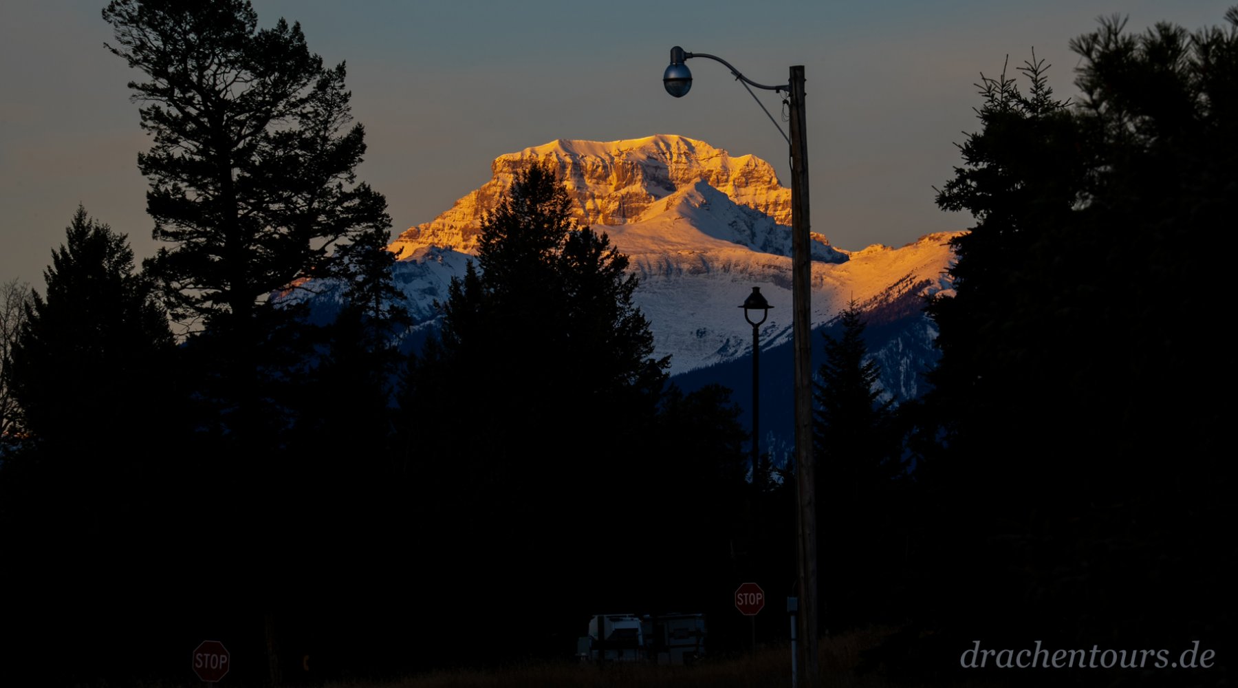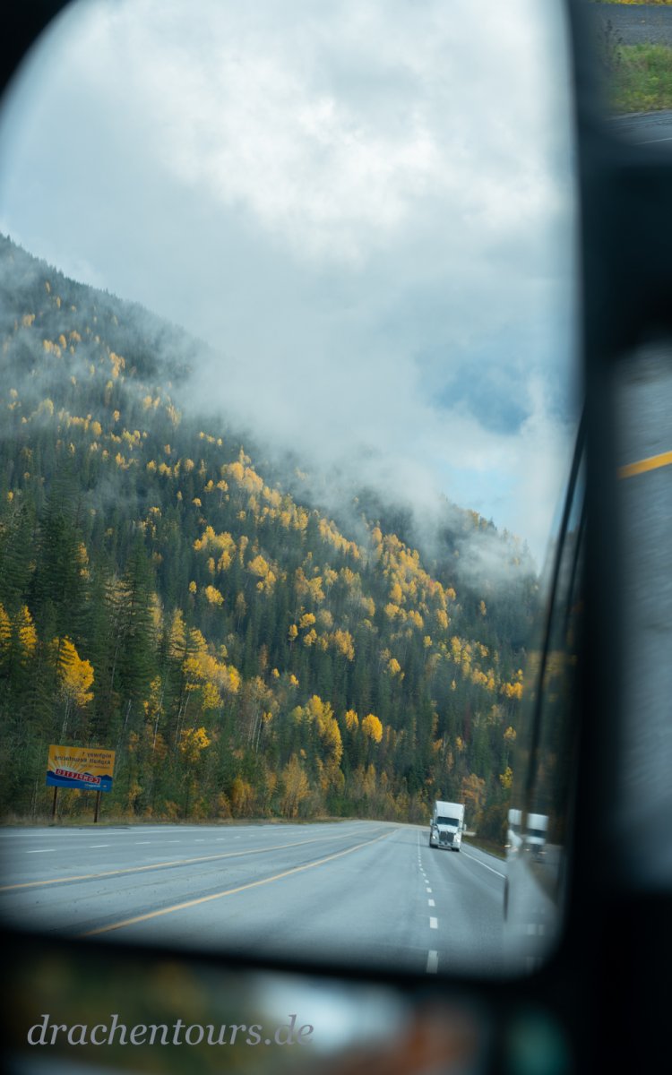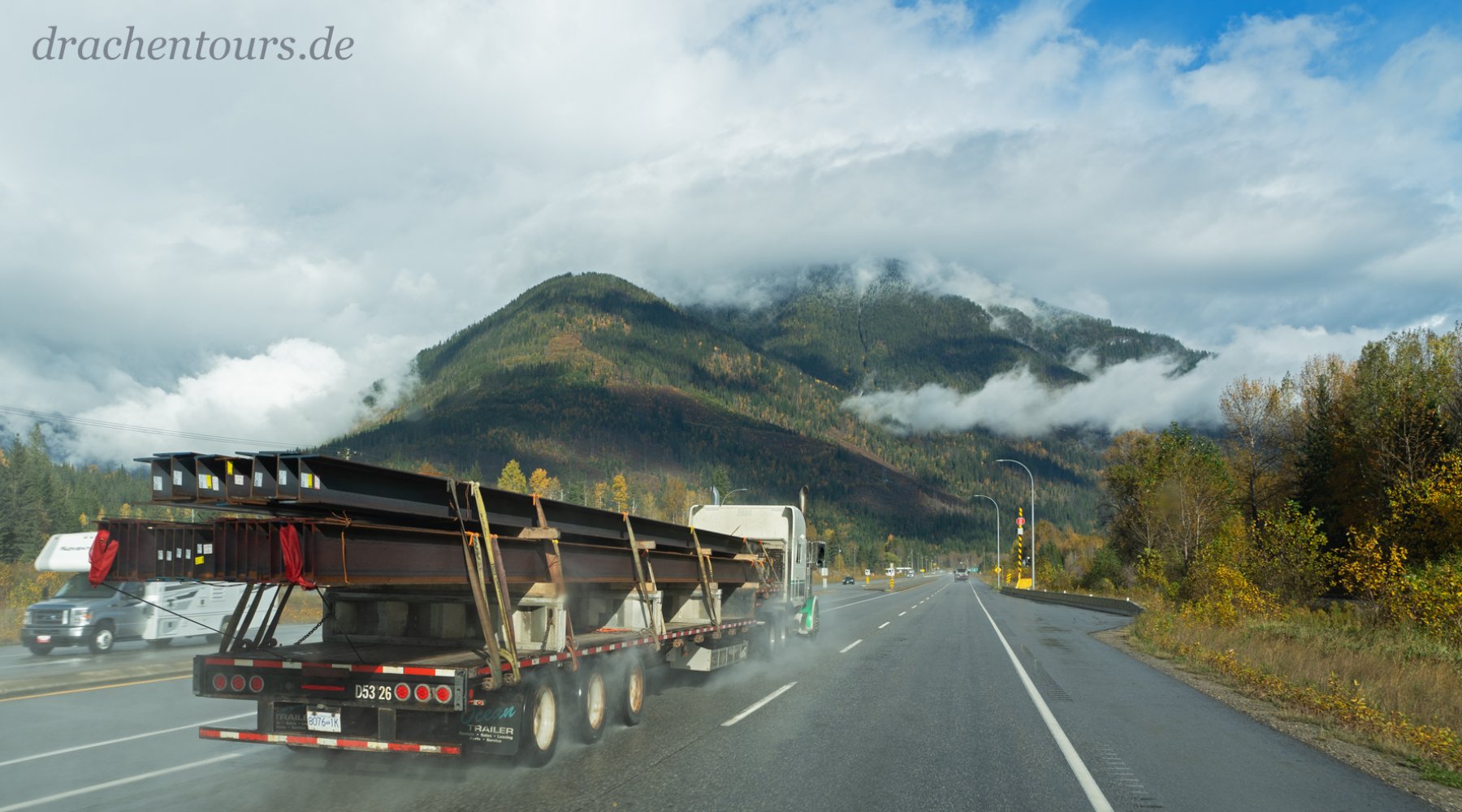 Nach kürzeren Zwischen-Etappen in 2 Tagen (Hope und Kamloops) mit jeweils ca. 300 km stehe am Fuße der Rockies.