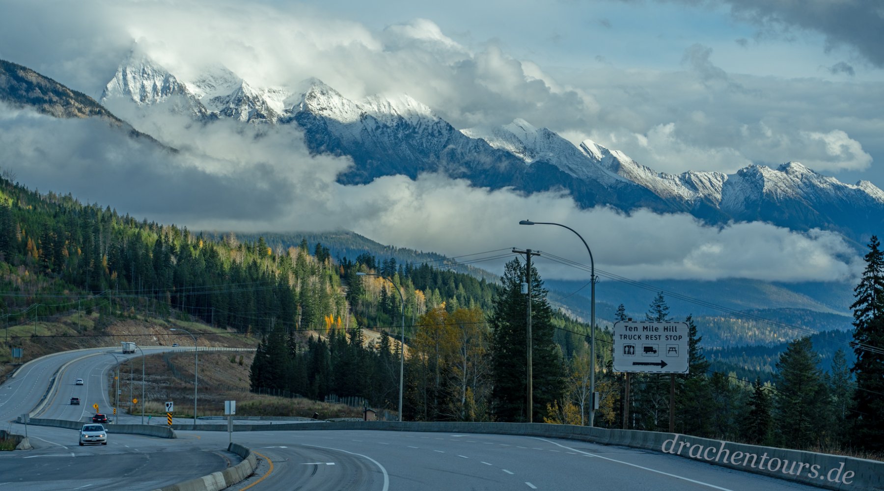 Nach Revelstoke geht es richtig hoch in die Rockies, aber ich weiß bereits, dass meine Wetter-App recht zuverlässig vorhersagt.