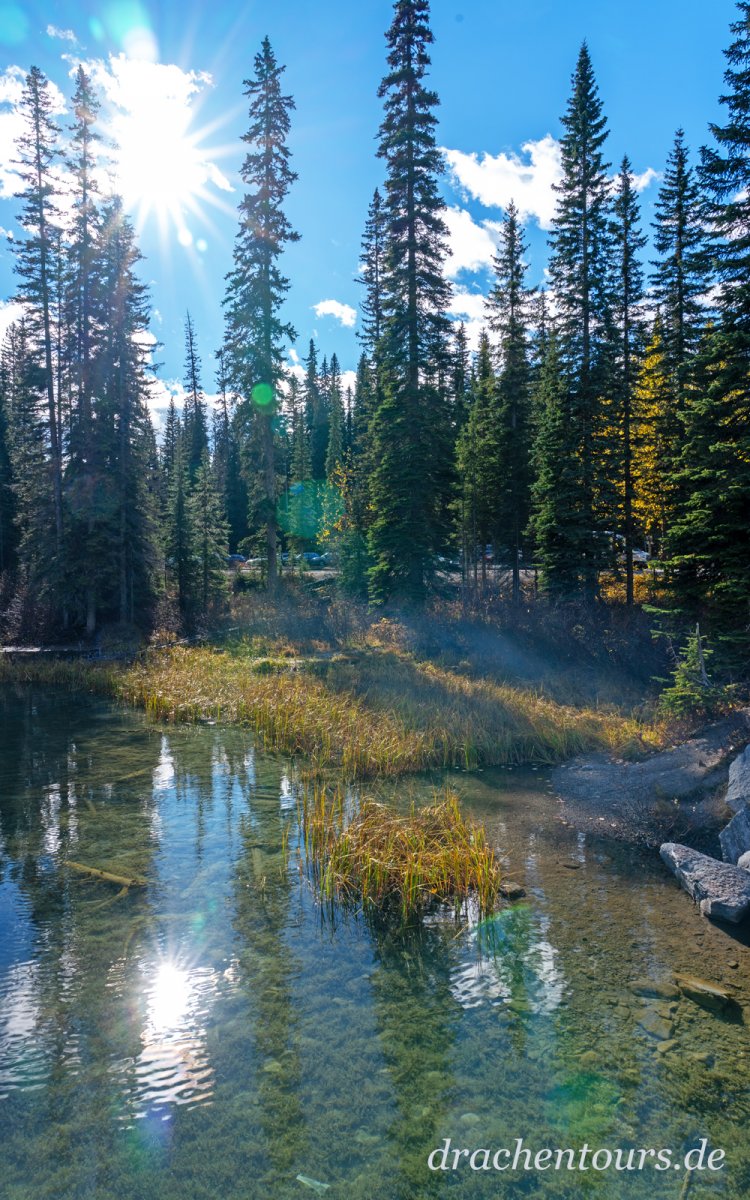 Der Emerald Lake empfängt uns in wundervollem “blauen Sonnenschein” ;-)