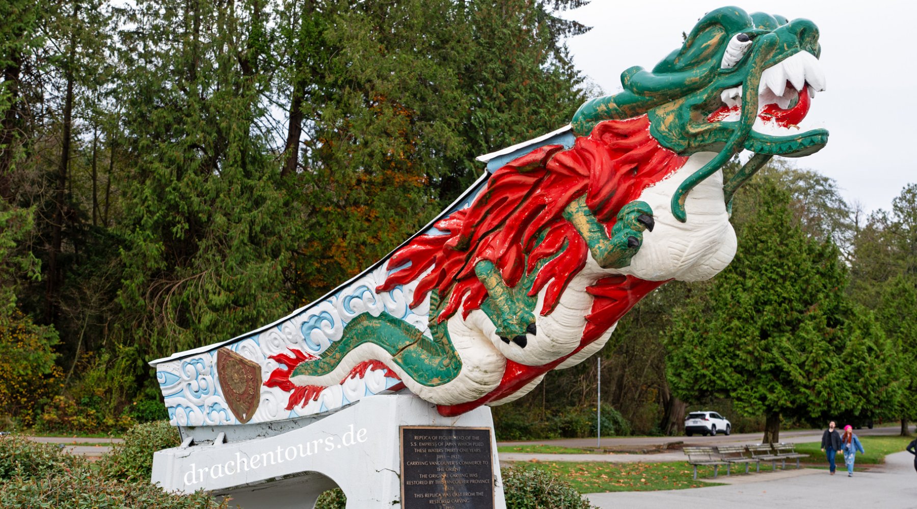 Hier findet man zahlreiche Beispiele für die Einflüsse unterschiedlichster Ethnien in der Entstehungsgeschichte Vancouvers (Ureinwohner, asiatische Familien und zahlreiche europäische Länder) —> Foto 02.