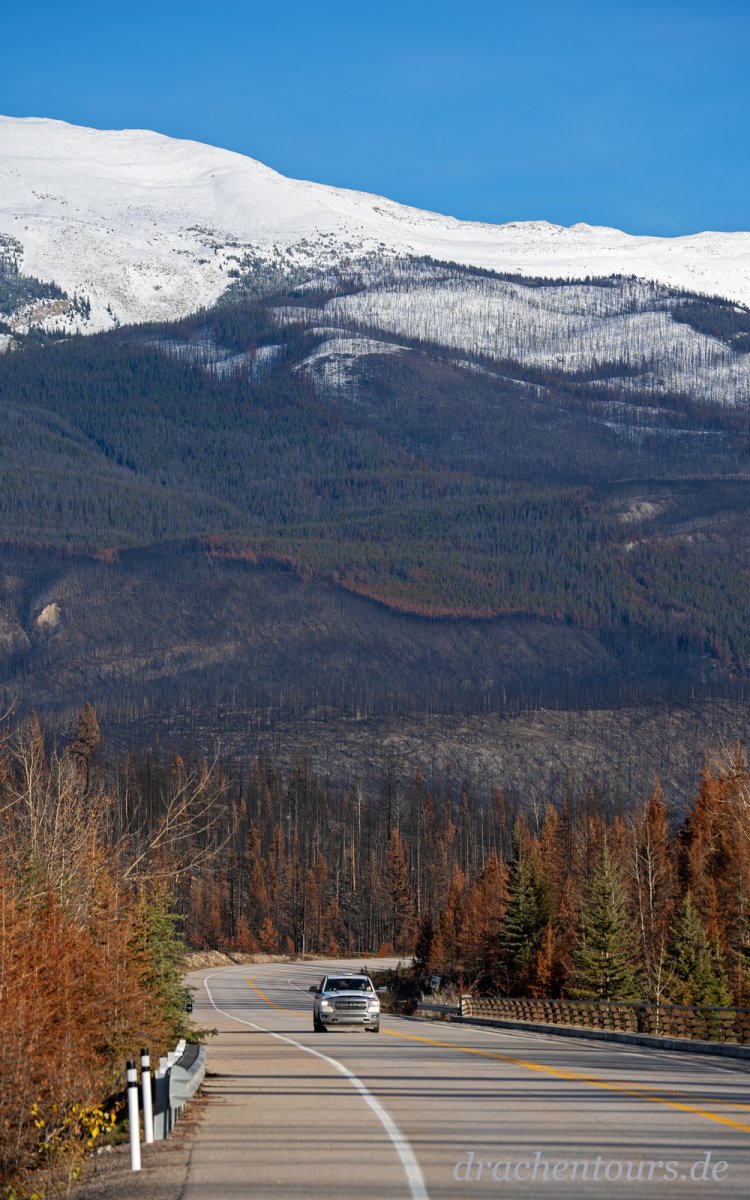 Wieder in der Zivilisation (und einem weiteren Nationalpark) empfängt mich kurz vor Jasper eine surreale Landschaft.