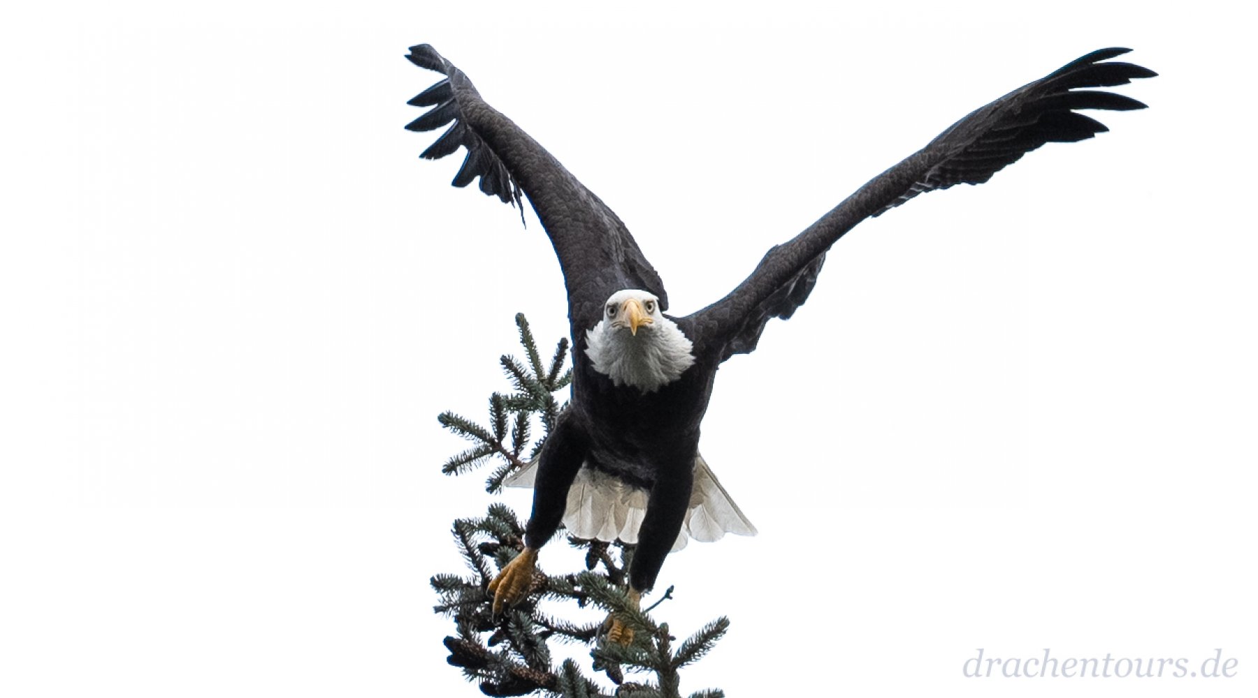 Zwischen November und Februar findet sich HIER in Squamish jedes Jahr die größte Population an Weißkopfseeadlern (Bald Eagle) von ganz KANADA ein.