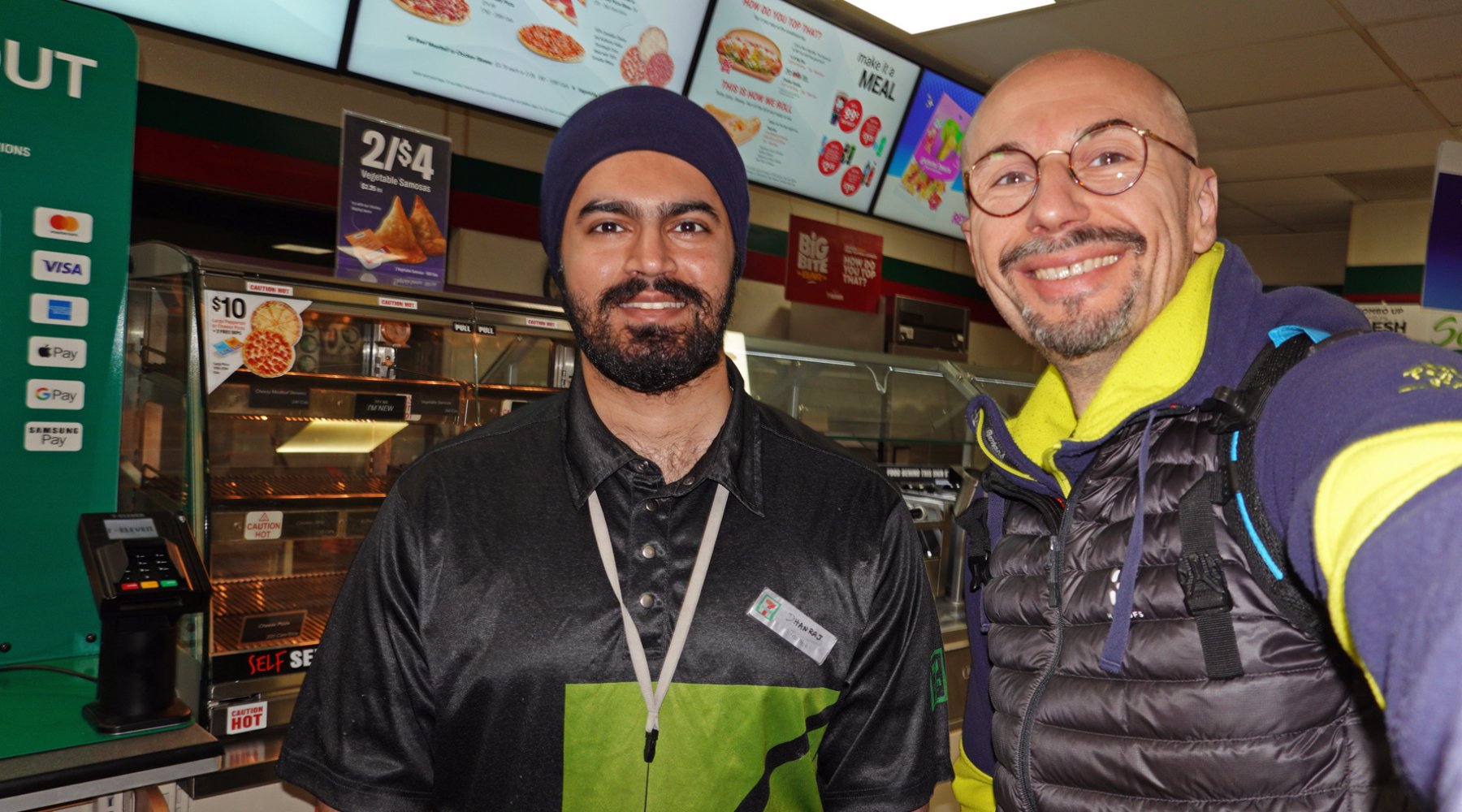 Er studiert in Vancouver Bankenwesen, arbeitet dabei von 19:00 – 7:00 Uhr (hier im 7-Eleven), schläft dann bis 13:00 Uhr und geht am Nachmittag in die Uni zur Vorlesung …