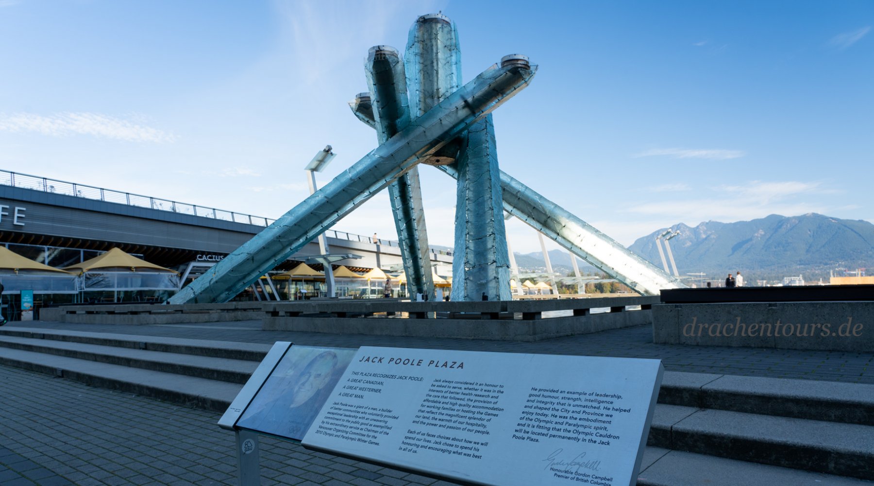 Anlässlich der olympischen Winterspiele 2010 errichtet, blieb diese Version (ohne olympisches Feuer an den Spitzen) bestehen.