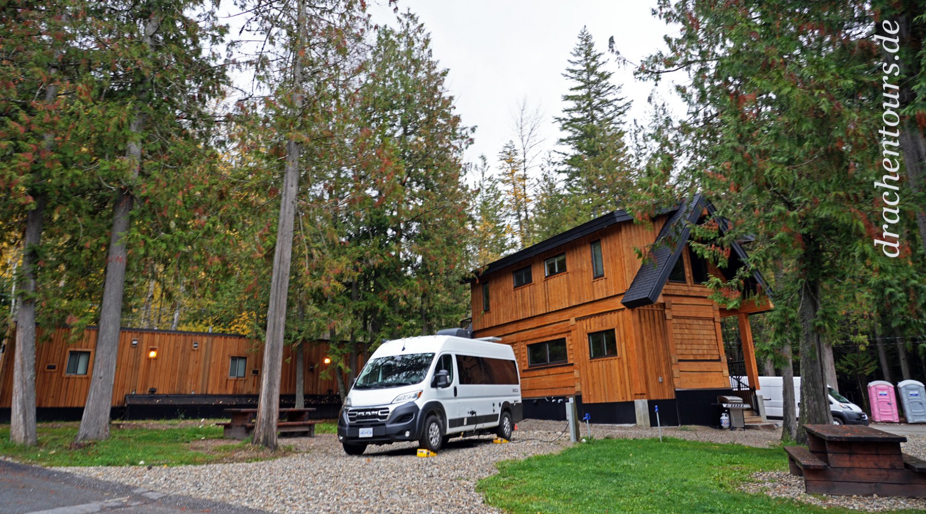 Als ich in Whistler ankomme, geht es gleich mal zum einzigen (noch geöffneten) Campingplatz im Ort und Umgebung.